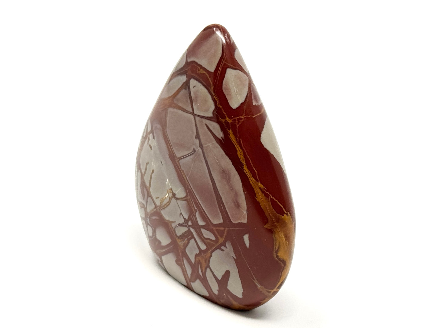 This striking Noreena Jasper Free Shape Crystal showcases a stunning array of rich rust-red, deep maroon, fiery orange, mustard yellow, subtle cream and stone grey hues, which complement each other beautifully.