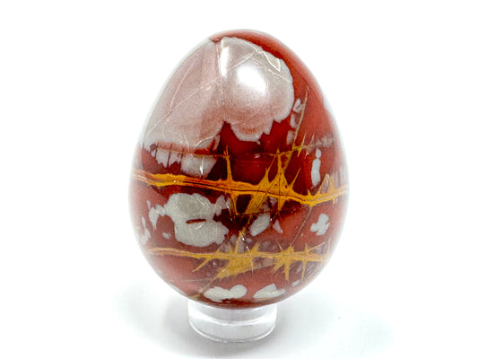 This Noreena Jasper Crystal is of a very high grade, and the careful polish has enhanced the shine and vibrancy of this stone's volcanic colours and patterns.