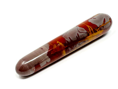 The raw, natural Noreena Jasper Stone has been cut and polished by hand into a sleek crystal wand shape: more specifically, into a crystal massage wand shape with two rounded edges, perfect for crystal healing massages.