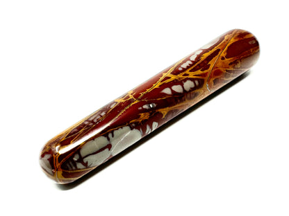 This striking Noreena Jasper Crystal Wand showcases a stunning array of rich rust-red, deep maroon, fiery orange, mustard yellow, subtle cream and stone grey hues, which complement each other beautifully.