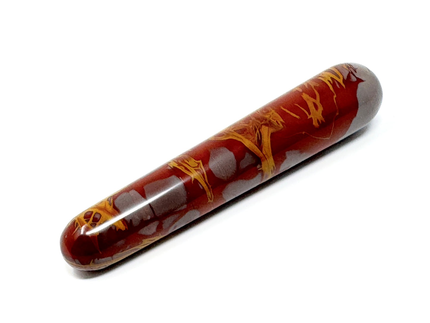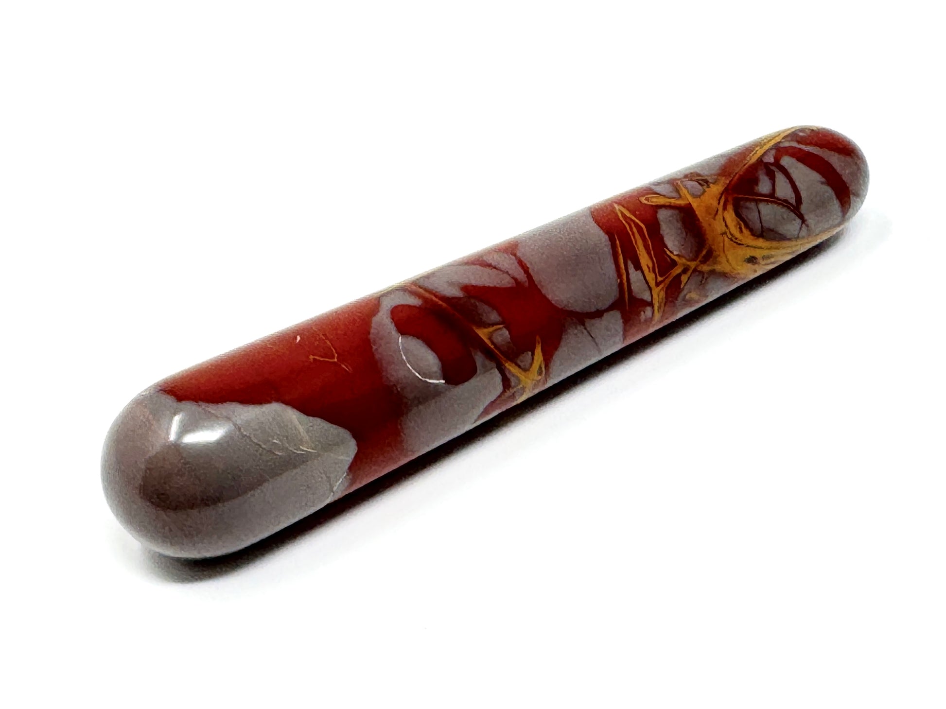 The raw, natural Noreena Jasper Stone has been cut and polished by hand into a sleek crystal wand shape: more specifically, into a crystal massage wand shape with two rounded edges, perfect for crystal healing massages.