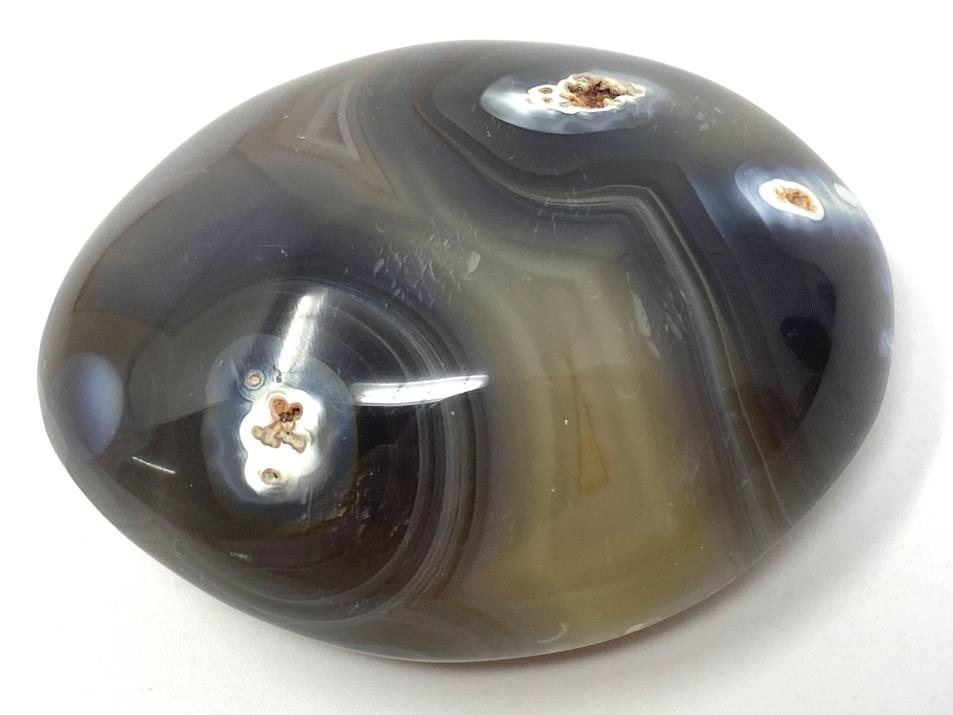 This beautiful Orca Agate Crystal Pebble (also known as an Orca Agate Crystal Palm Stone) measures 6.8cm long and has been cut and carefully polished into a smooth, tactile palm stone shape.