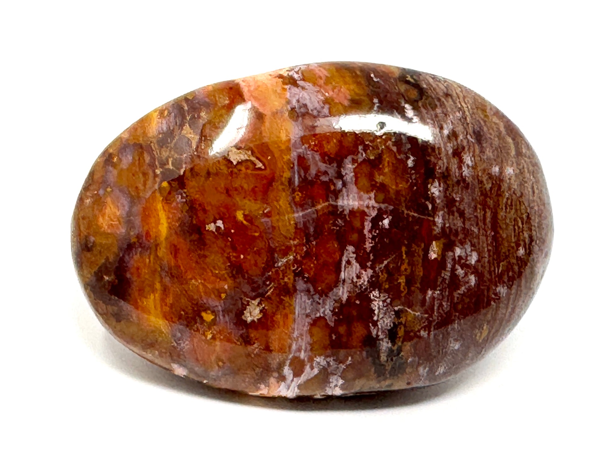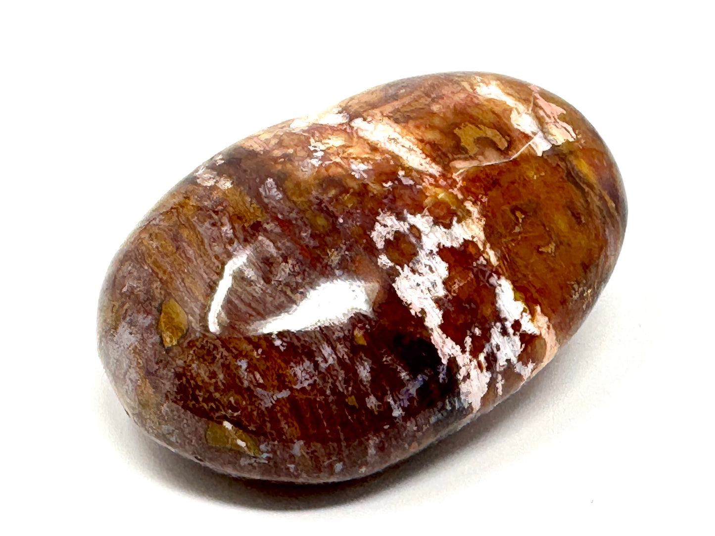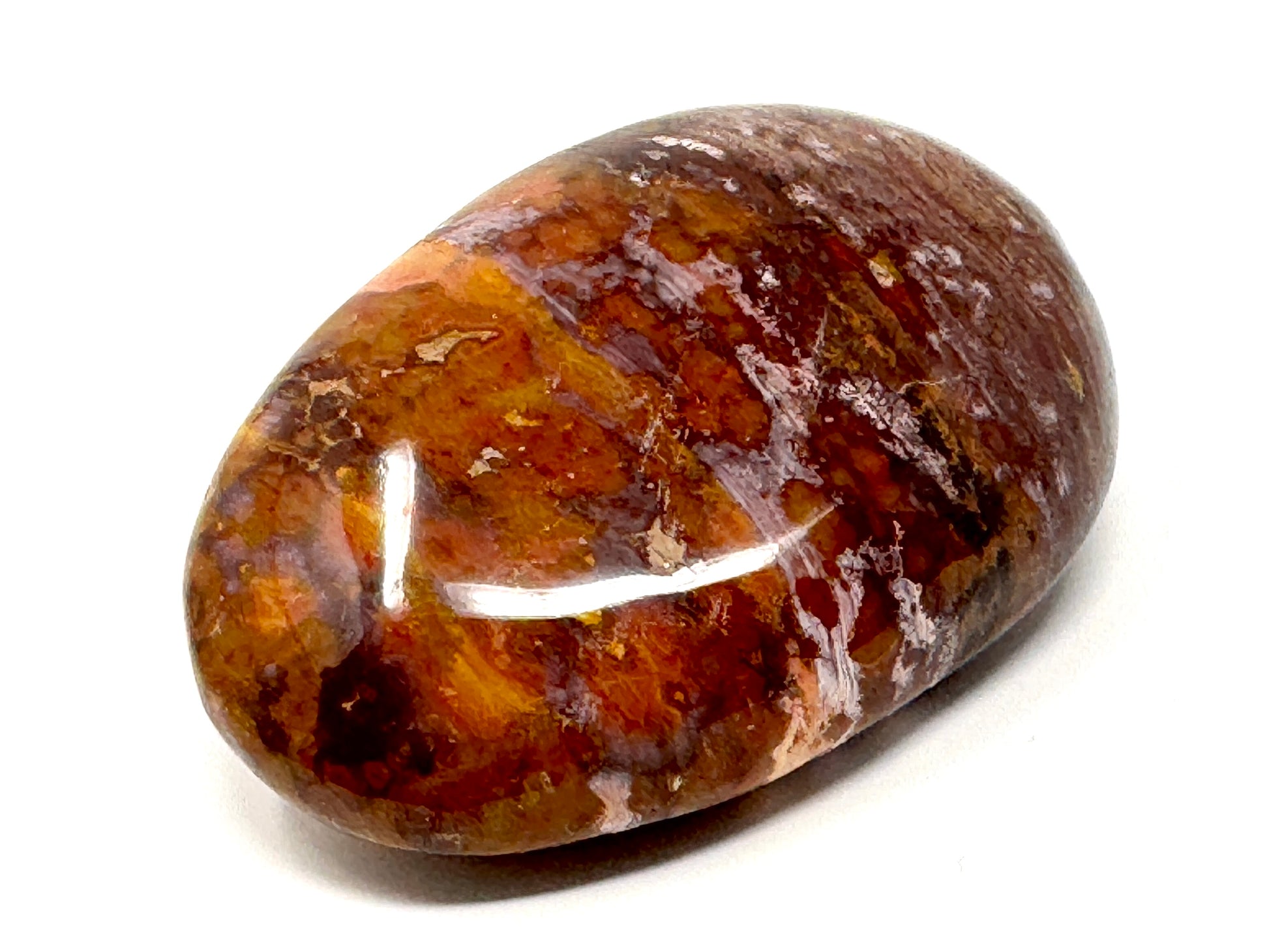 This gorgeous Ocean Jasper Pebble measures 6.1cm long and displays stunning swirls of red, orange, and brown colours.