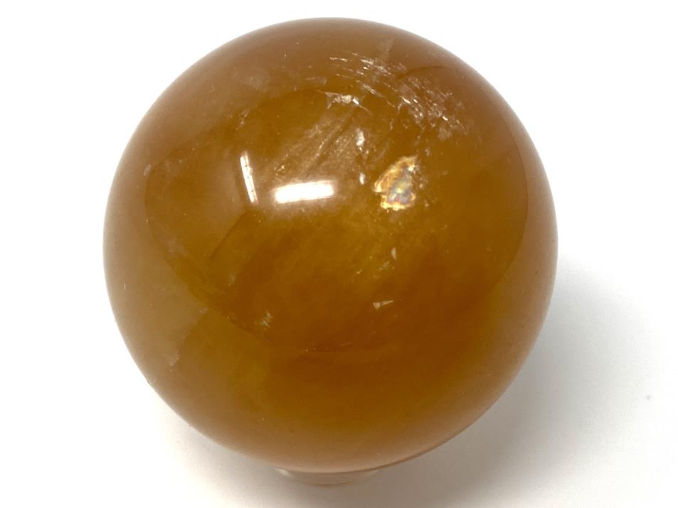 This high-grade, hand-polished Optical Honey Calcite Crystal Sphere measures 4.2cm in diameter and displays gorgeous golden-yellow colours.