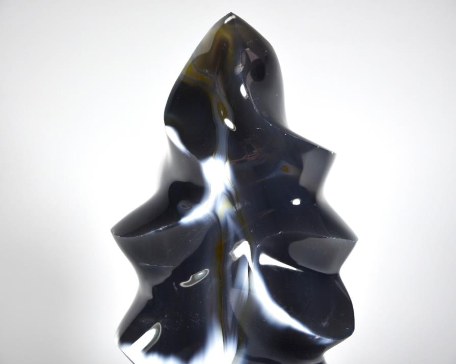 This beautiful Large Orca Agate Crystal Flame Shape (also known as a Large Ocean Agate Crystal Flame Shape) measures a magnificent 27cm tall and has been cut and carefully polished into a smooth, curved crystal flame shape with a free-standing base.