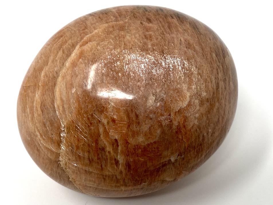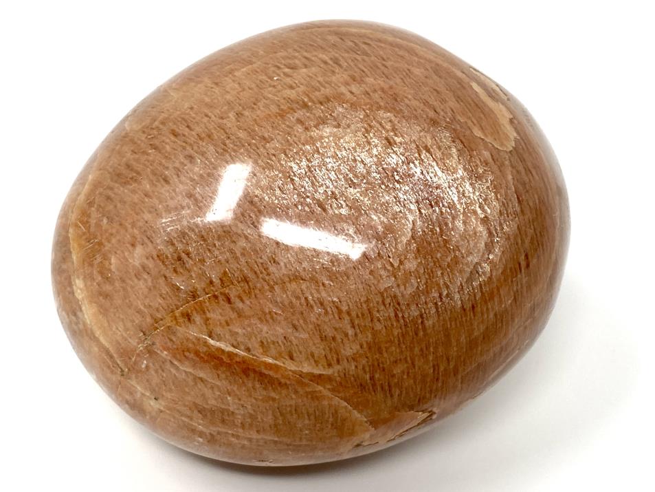 This gorgeous Peach Moonstone Pebble (otherwise known as a Peach Moonstone Palm Stone) measures 6.5cm long and displays beautiful tan and pink-peach hues with a stunning silvery shimmer and flash owing to its Feldspar composition.