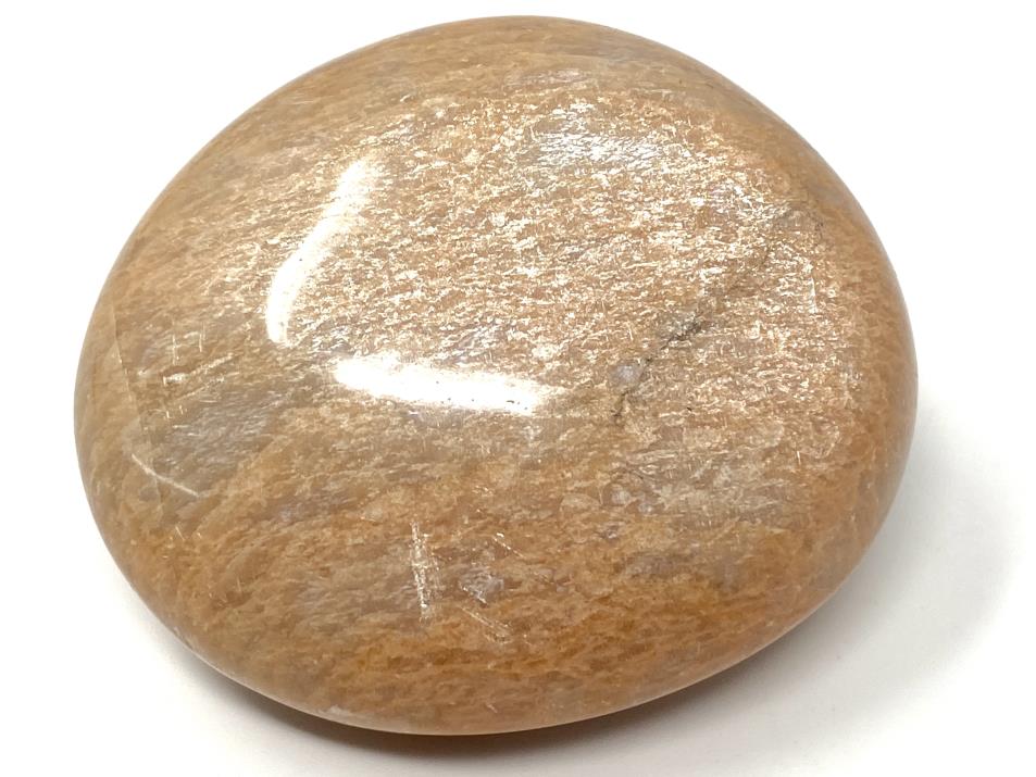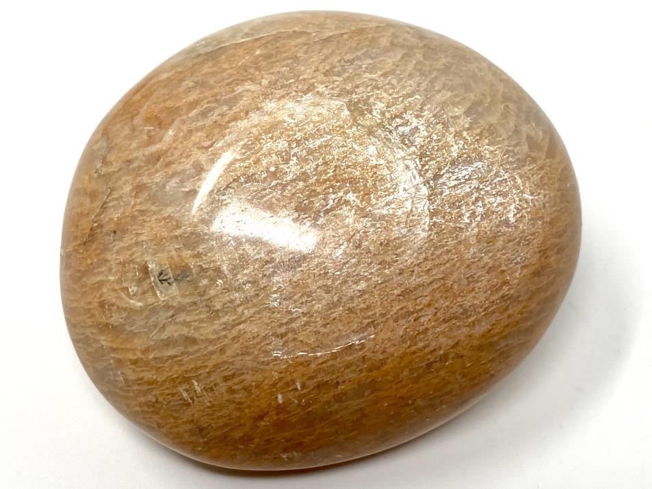 This gorgeous Peach Moonstone Pebble (otherwise known as a Peach Moonstone Palm Stone) measures 5.9cm long and displays beautiful tan and pink-peach hues with a stunning silvery shimmer and flash owing to its Feldspar composition.
