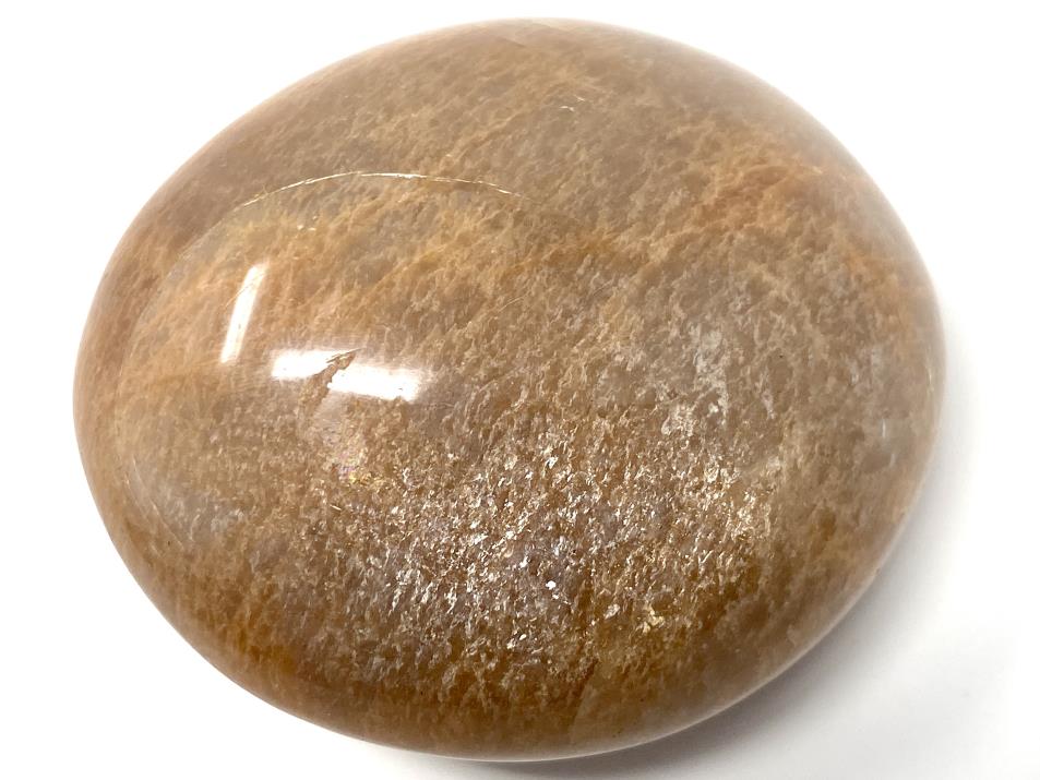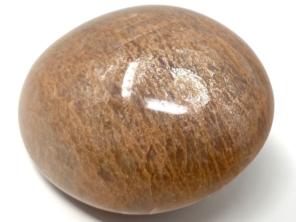 This gorgeous Peach Moonstone Pebble (otherwise known as a Peach Moonstone Palm Stone) measures 6.1cm long and displays beautiful tan and pink-peach hues with a stunning silvery shimmer and flash owing to its Feldspar composition.