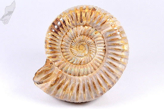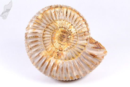 Perisphinctes Ammonite, fossil for sale from Madagascar. This gorgeous fossil measures 7.6cm at its widest measurement and has been slightly polished on top of its natural shell, which displays lovely cream colours. Sourced from the Tulear region of Southern Madagascar, this well-preserved piece dates back to the Jurassic Period and is therefore approximately 163 million years old!