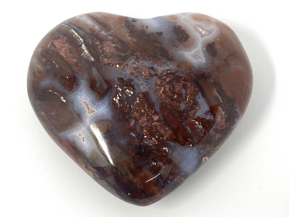 Displaying a stunning kaleidoscope of vibrant colours, including streaks of dark red, light grey, and white, the patterns of this Petrified Wood Heart are truly mesmerising.