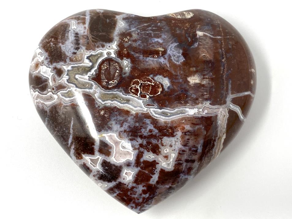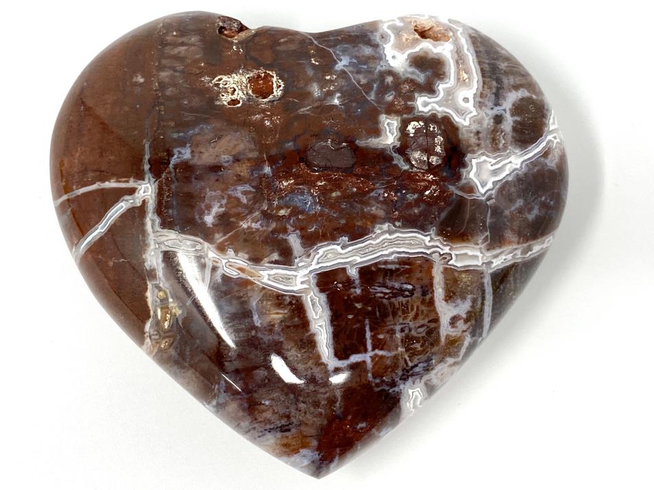 Displaying a stunning kaleidoscope of vibrant colours, including streaks of dark red, black, brown, and white, the patterns of this Petrified Wood Heart are truly mesmerising.