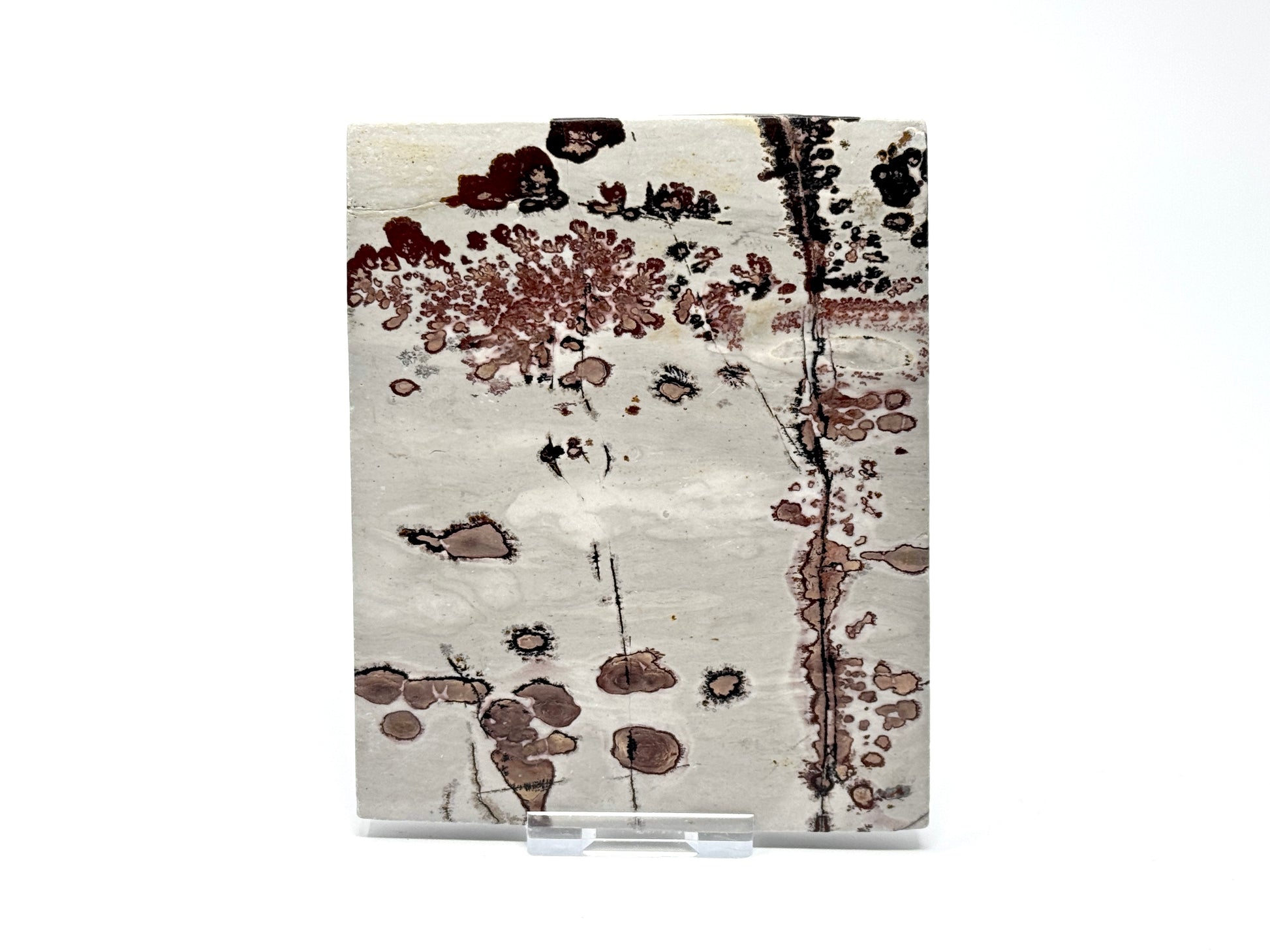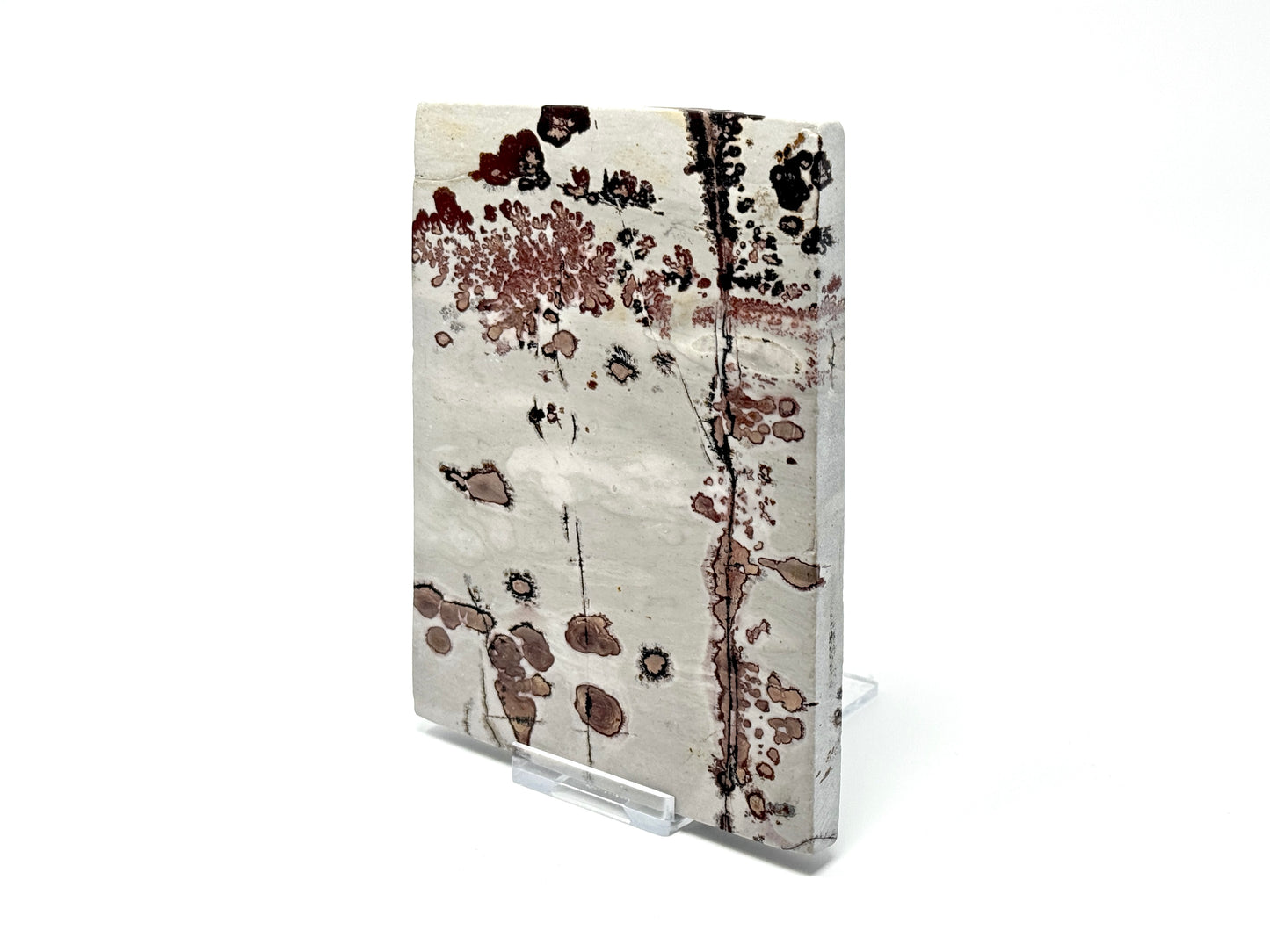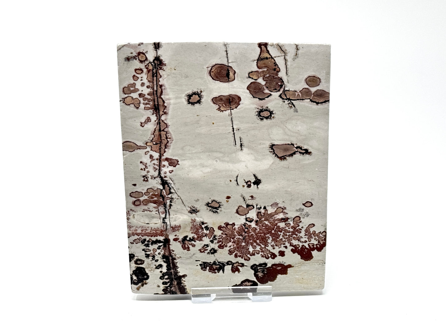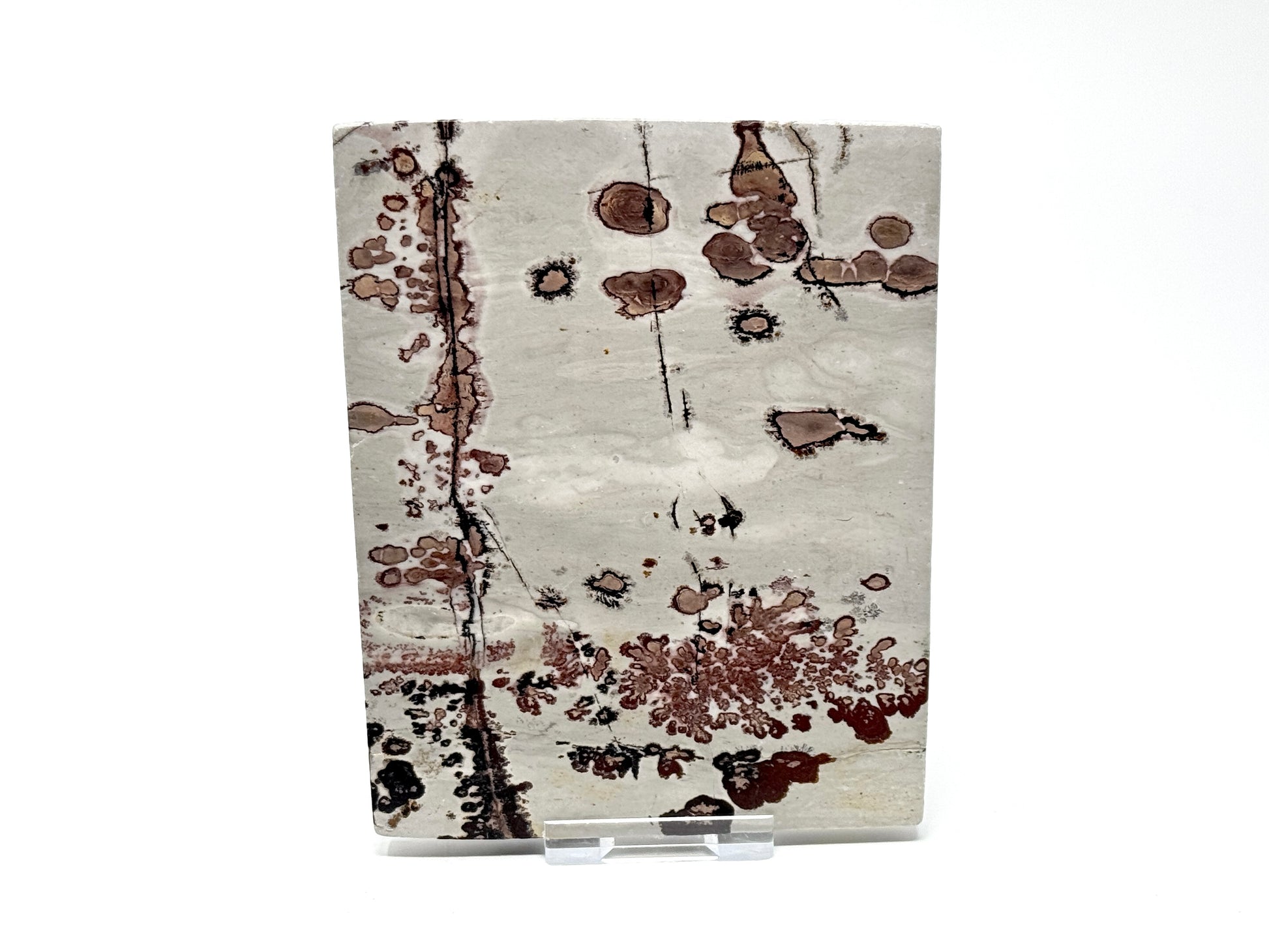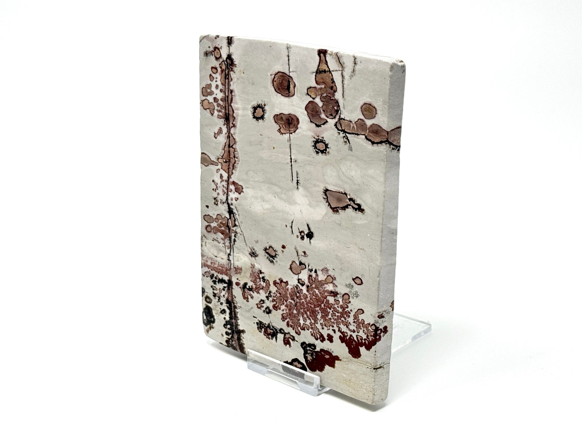 This gorgeous Picture Jasper Slice/ Picture Jasper Tile measures 12.8cm long and displays striking patterns and markings that evoke imagery of landscapes and paintings.