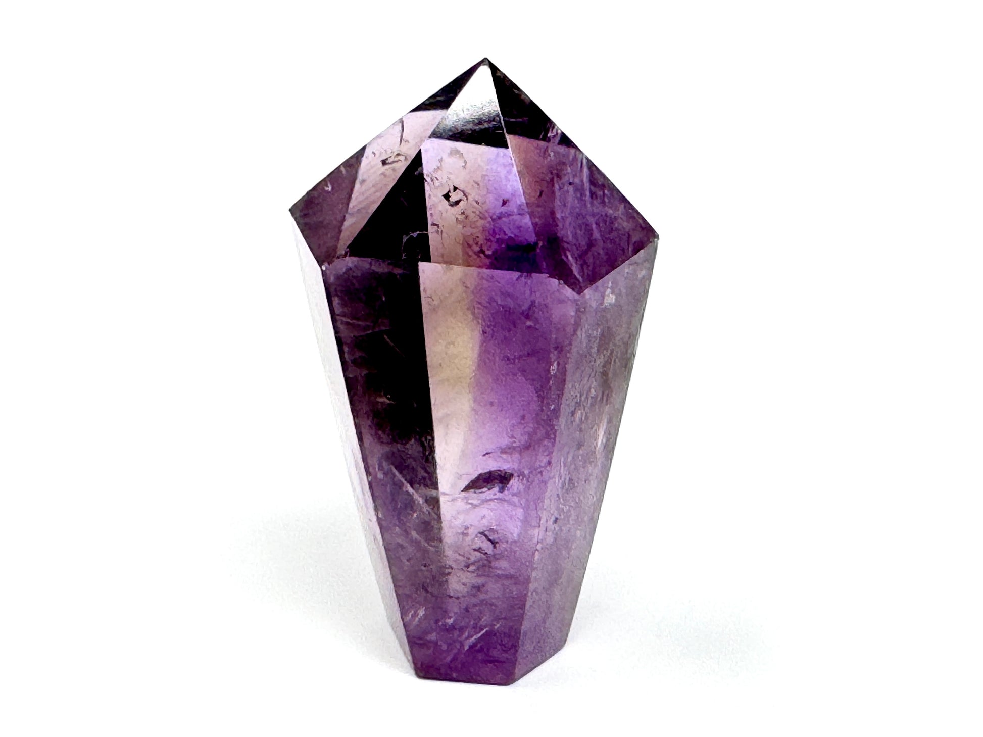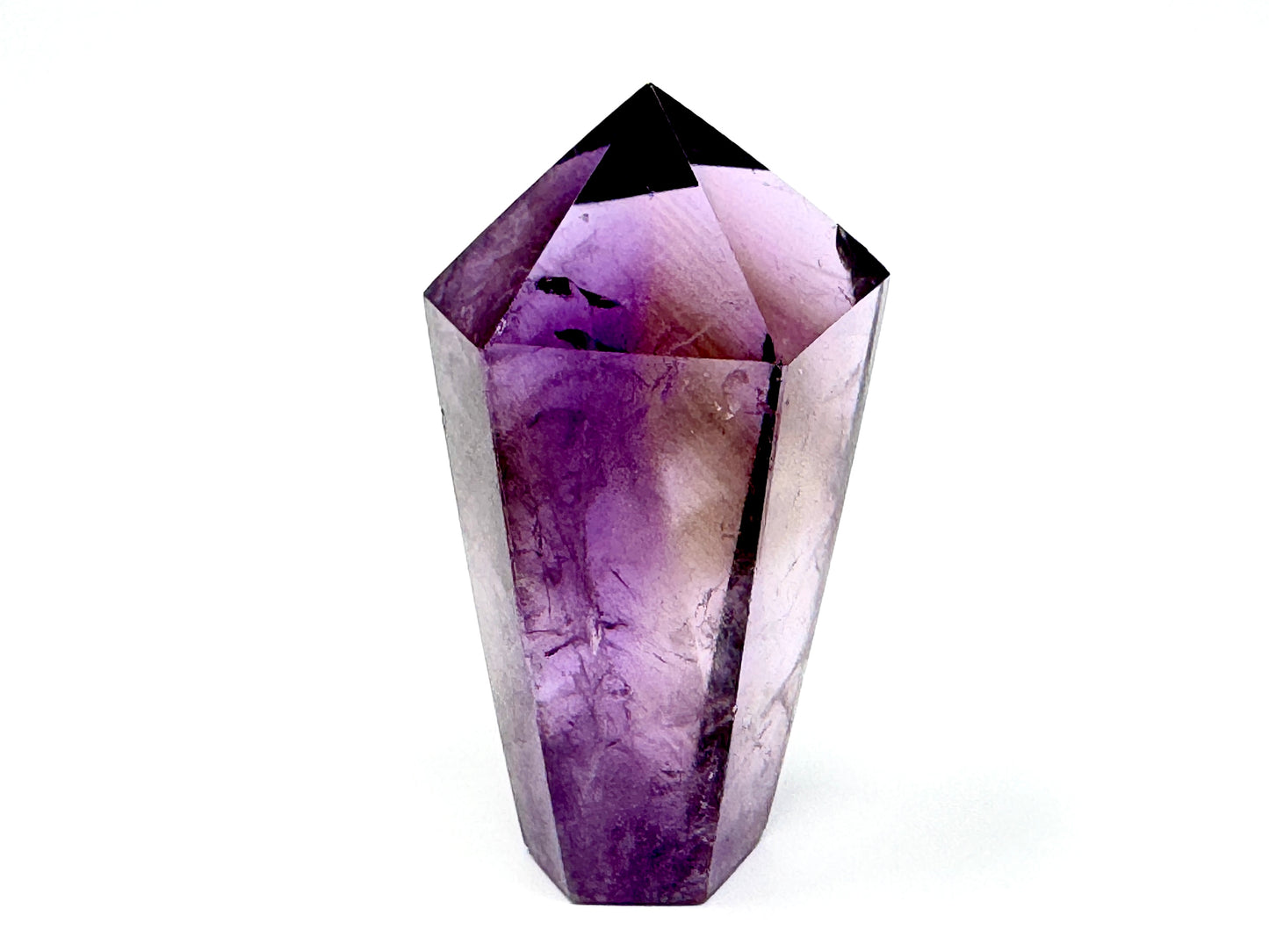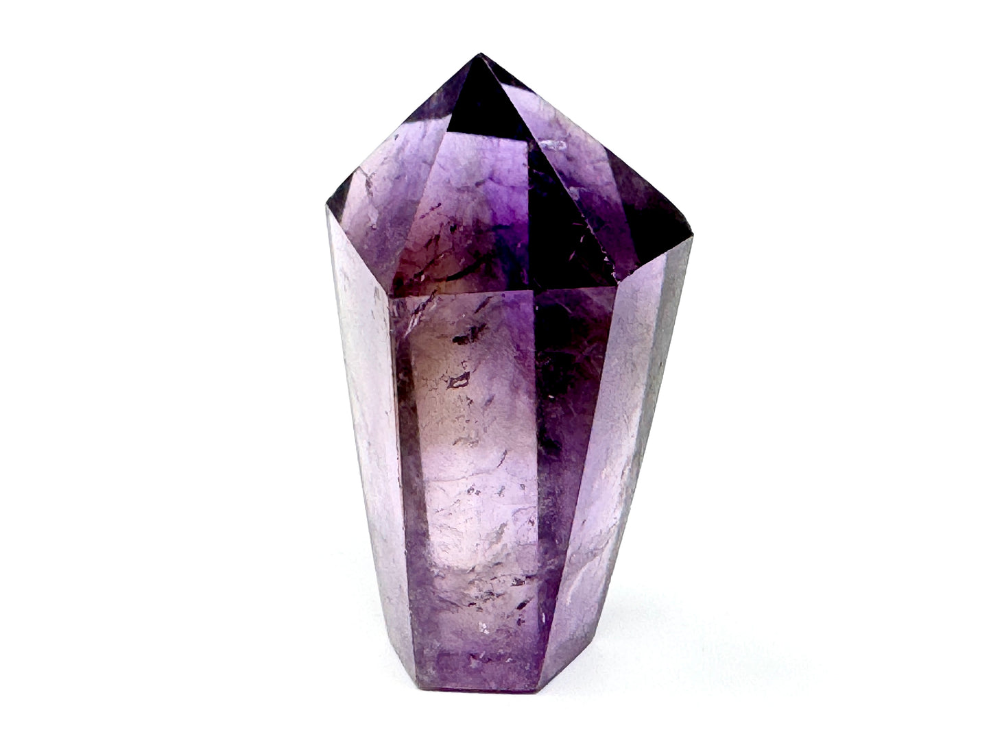 Displaying a radiant array of colour, this Amethyst Point has been hand-polished to achieve a sleek finish.