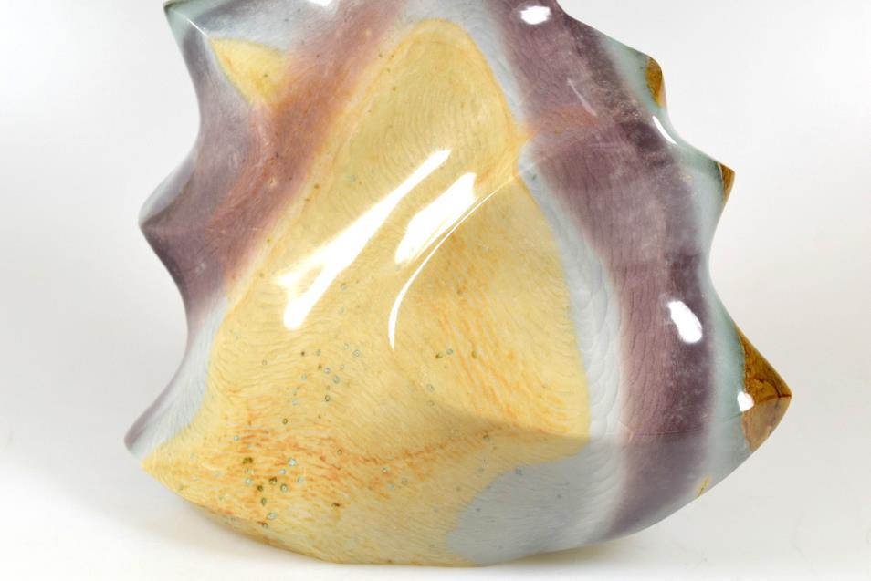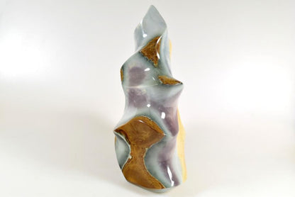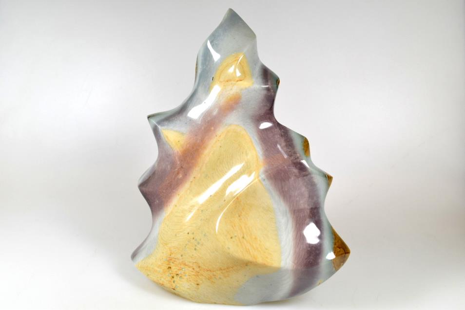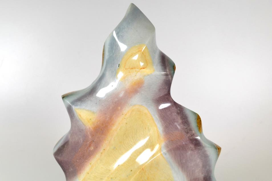 This colourful Large Polychrome Jasper Crystal Flame Shape measures 21cm tall, and displays lovely yellow, purple-red, orange, brown, and grey colours.