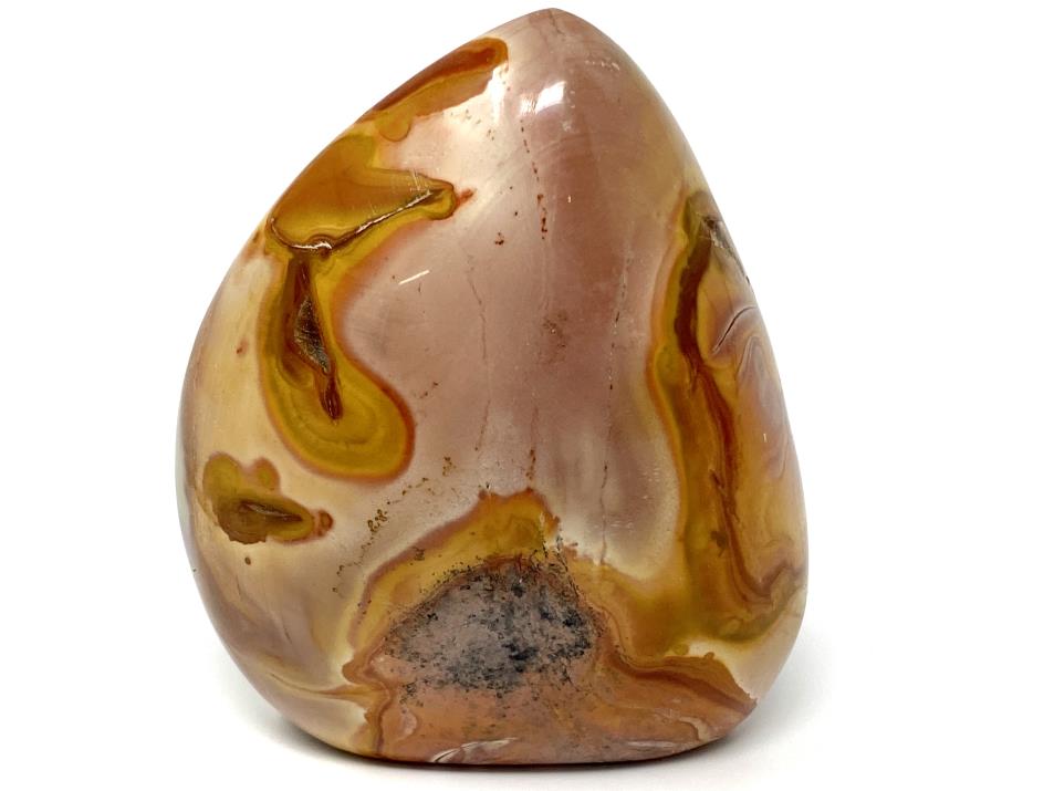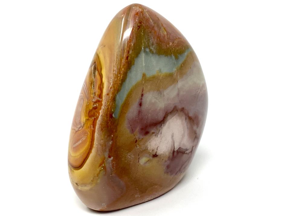 This striking Polychrome Jasper Free Shape Crystal showcases stunning swirls and circular patterns, and displays a free-standing base.