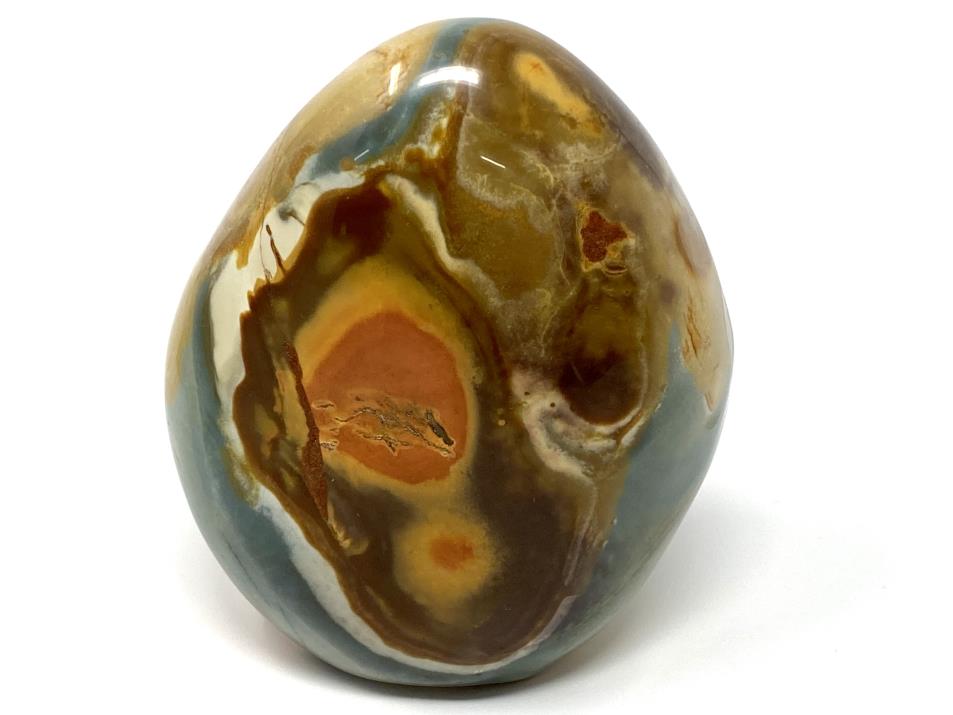 This colourful Large Polychrome Jasper Freeform measures 14.4cm tall, and displays lovely orange, brown, and grey colours.