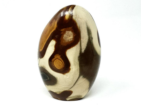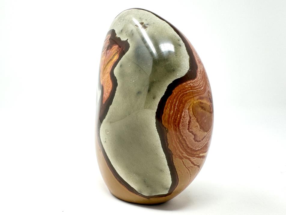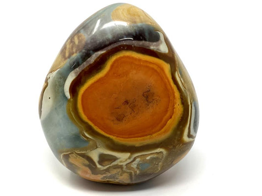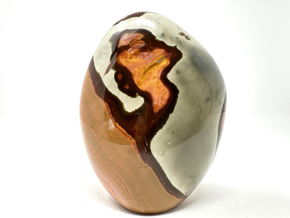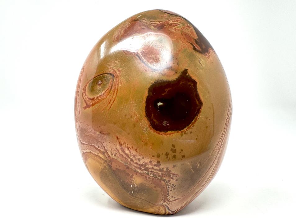 This striking Polychrome Jasper Free Shape Crystal showcases stunning swirls and circular patterns, and displays a free-standing base.
