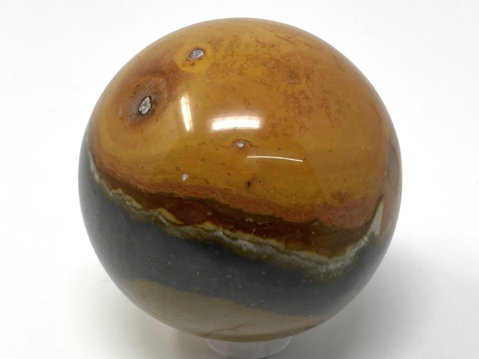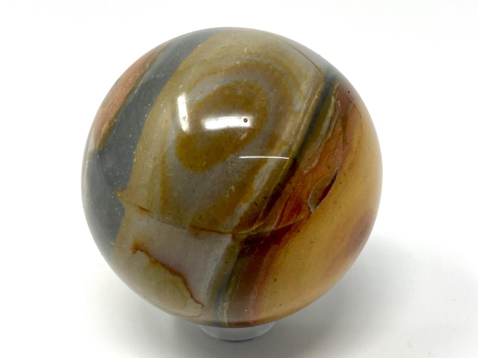 This colourful Polychrome Jasper Sphere measures a tactile 5.2cm in diameter, and displays lovely orange, brown, and grey colours.