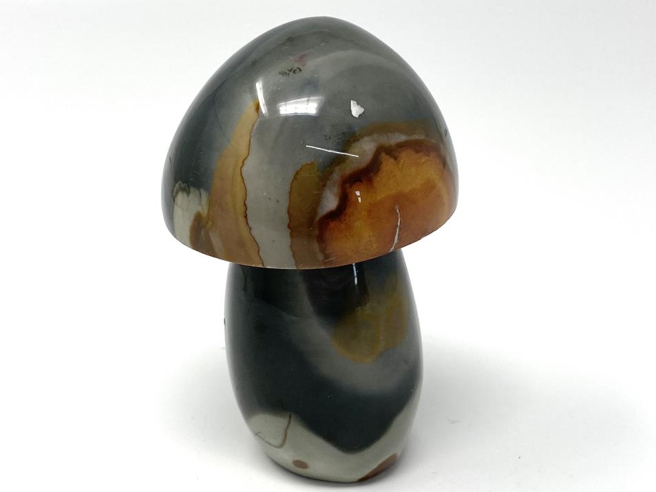 This colourful Polychrome Jasper Mushroom Carving measures 9.4cm tall, and displays lovely orange, brown, and grey colours.