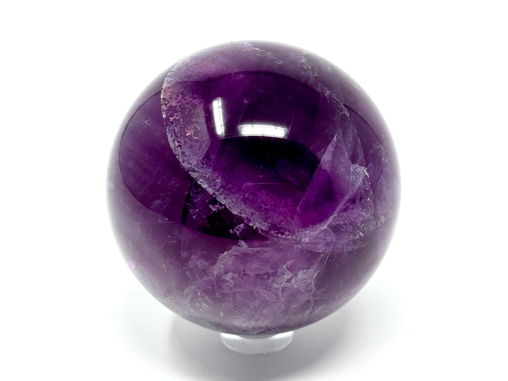 This stunning Purple Fluorite Sphere measuring 6cm in diameter showcases rich purple hues with hints of shimmering crystal rainbows.