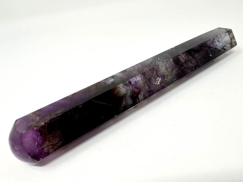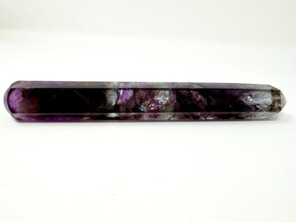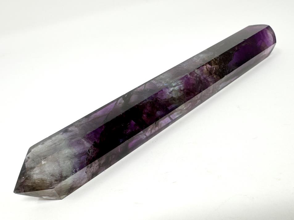 This stunning, very large Purple Fluorite Crystal Wand measuring 16cm long showcases a gorgeous mix of deep purple hues.