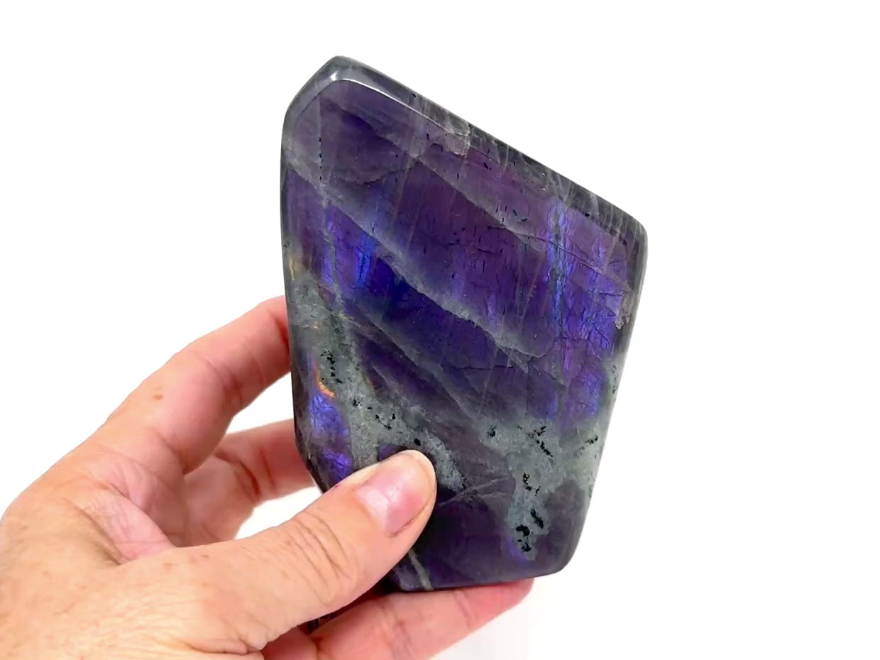 This unique Purple Labradorite Freeform Crystal would make a perfect gift for crystal collectors, and an excellent crystal display piece in the home.