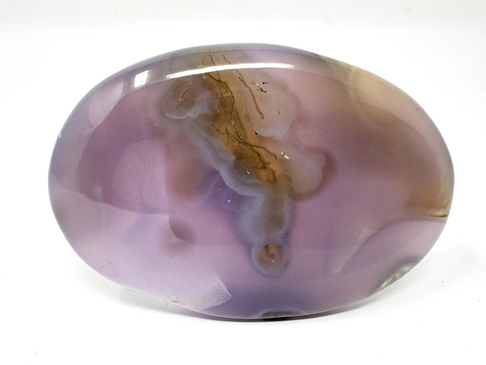 This stunning Druzy Purple Moss Agate Pebble, when lying flat on a surface, displays a deep grape-purple hue, whilst when held up to the light, it displays a lovely subtle, lilac-grey translucency.