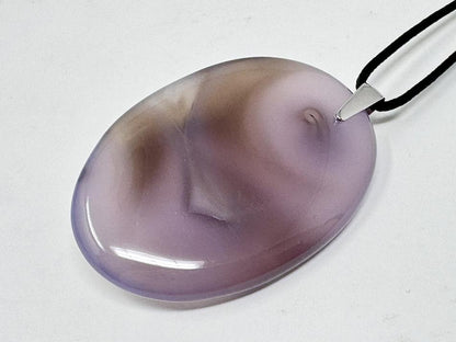 This unique piece of Hand-Made Crystal Jewellery has been cut from Purple Moss Agate Stone into an Oval Pendant Shape and hand-polished to a fantastically high standard in our UK workshop to create a smooth Large Polished Purple Moss Agate Crystal Pendant.
