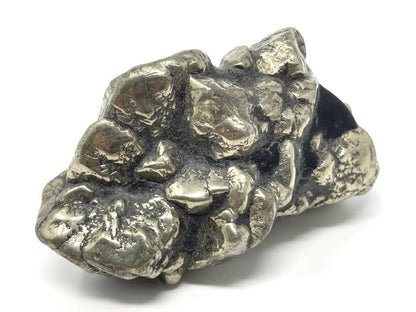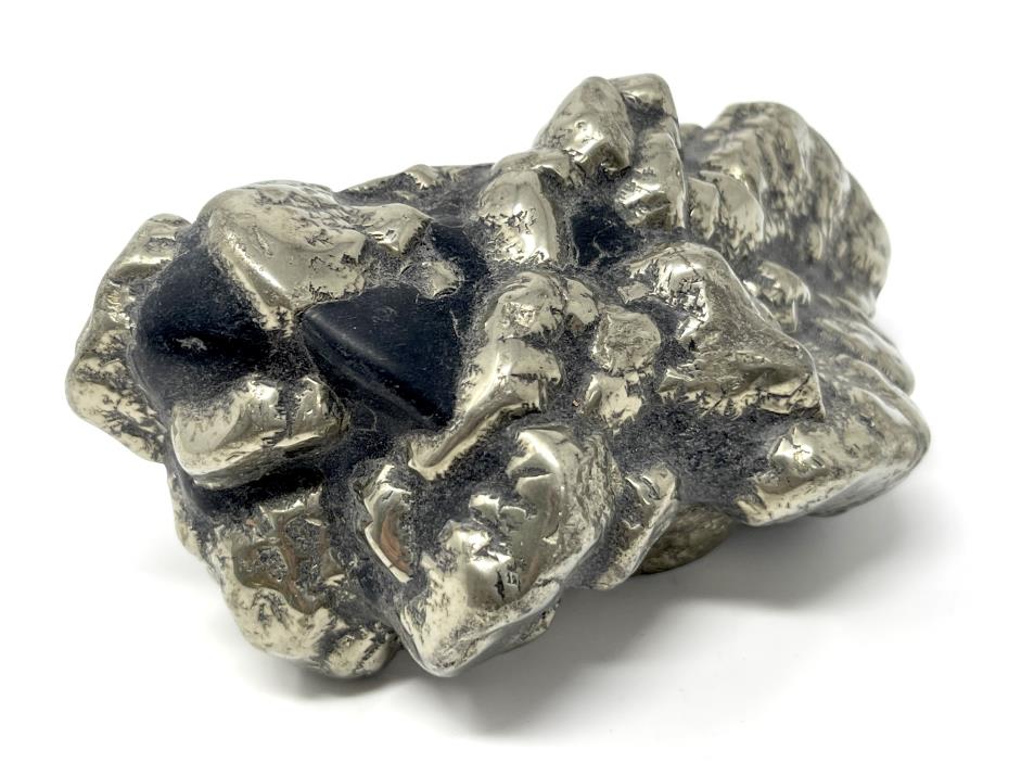 This stunning, rare, free-standing Hand-Polished Botryoidal Pyrite Crystal (otherwise known as a Botryoidal Pyrite Crystal) measures 10cm long, and shimmers and shines with gorgeous golden hues which reflect like a mirror and contrast strikingly against clouds of jet-black, creating a marvellous tapestry of colour.