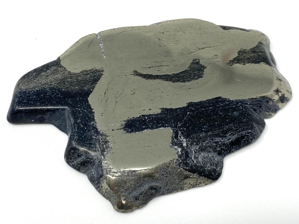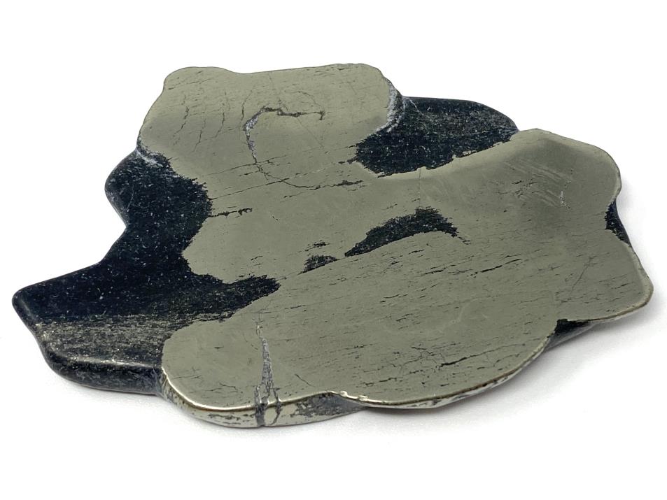 The Polished Iron Pyrite Stone has been carefully cut into an incredibly tactile flat polished crystal slice with two polished faces, that can can lay flat on a surface for display or be placed upright in a crystal display stand.