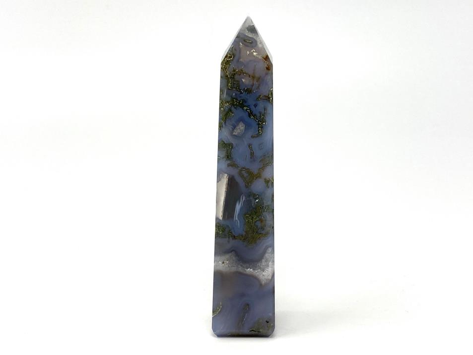 This beautiful Quartz Agate Crystal Tower (or Quartz Agate Crystal Obelisk) measuring 12.5cm tall displays a stunning Quartz base adorned with beautiful circles and tube-like banded patterns of translucent Blue-Grey Chalcedony Agate.