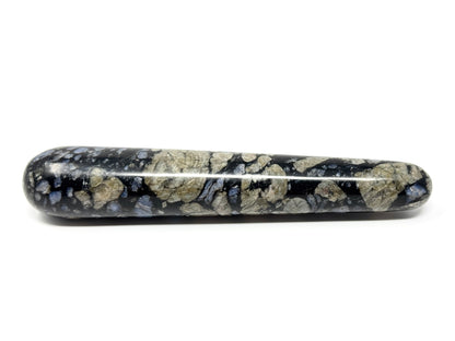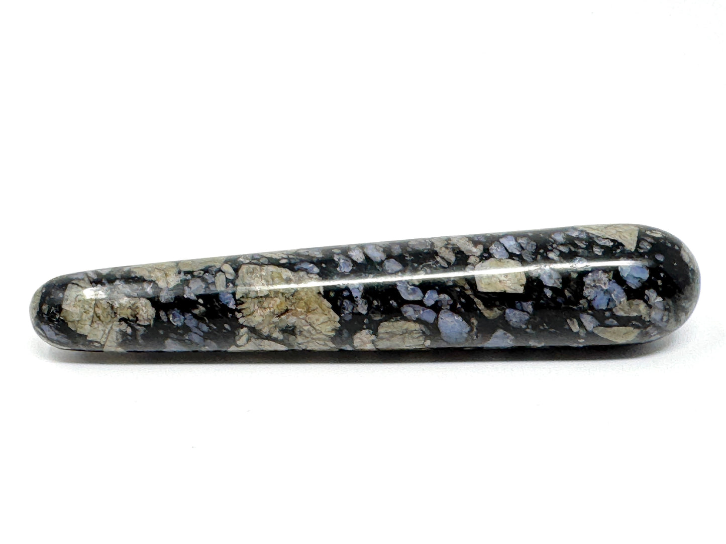 The Polished Que Sera Stone has been cut into a smooth, tactile crystal massage wand shape (a rounded crystal wand shape).
