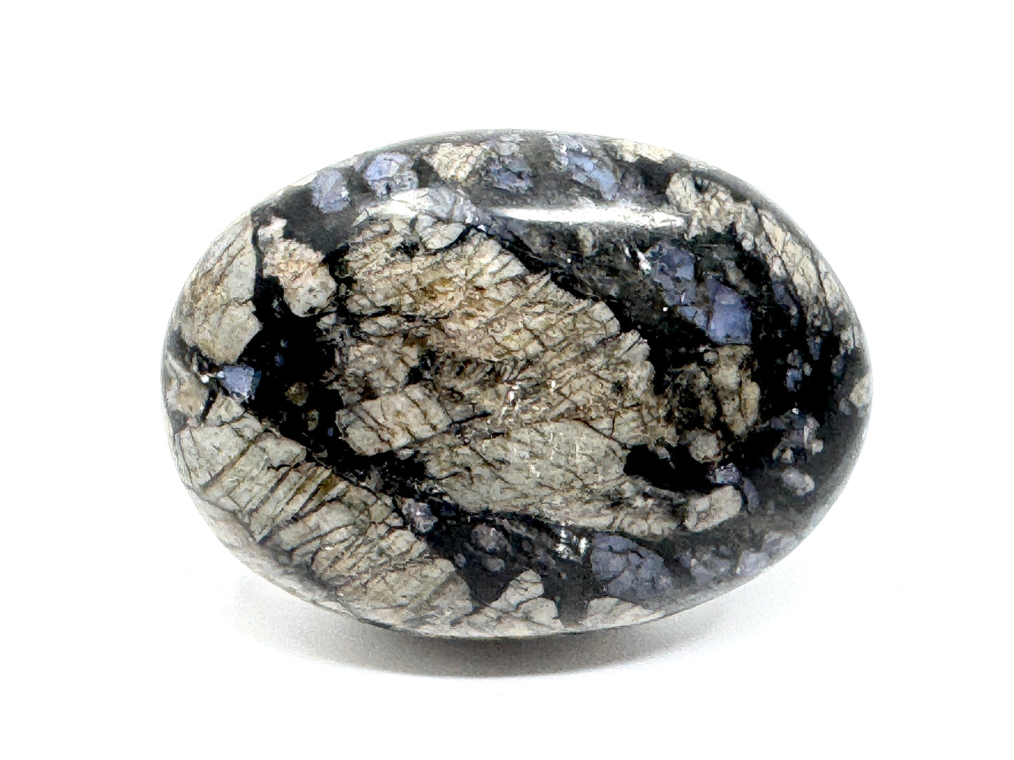 The Polished Que Sera Stone has been cut into a smooth, tactile oval pebble shape (oval palm stone shape).