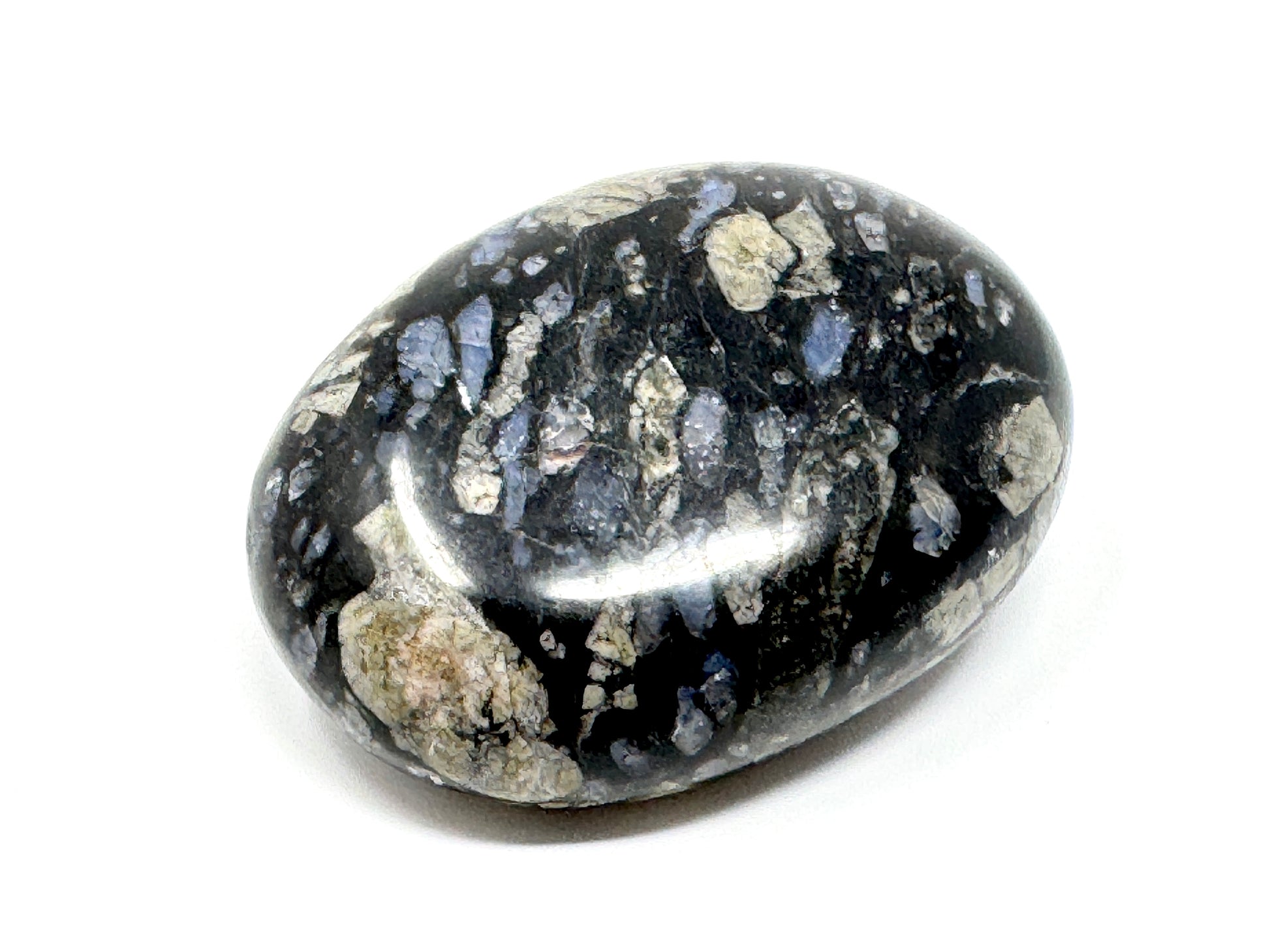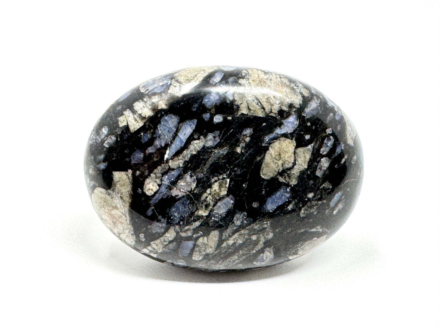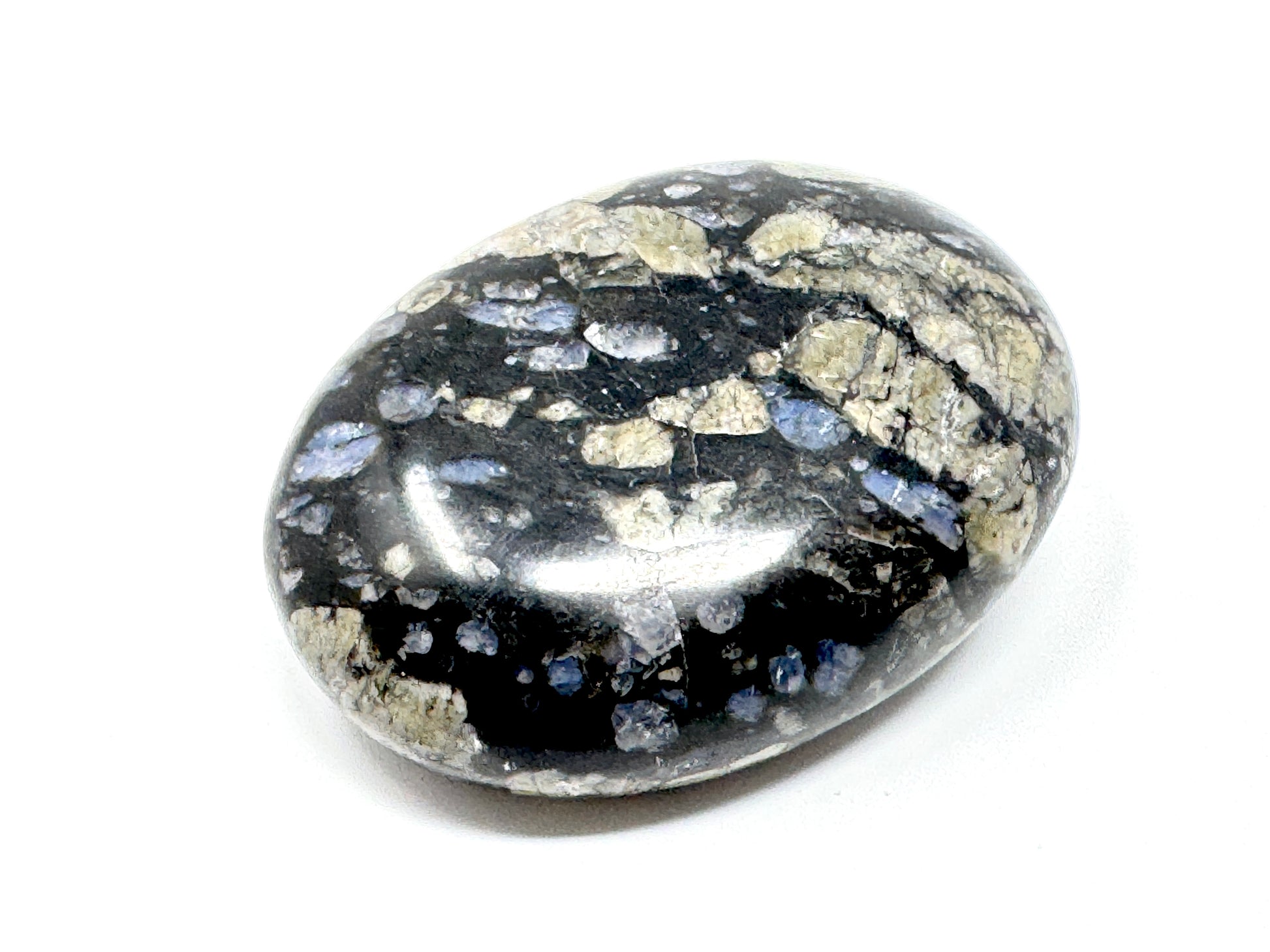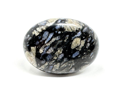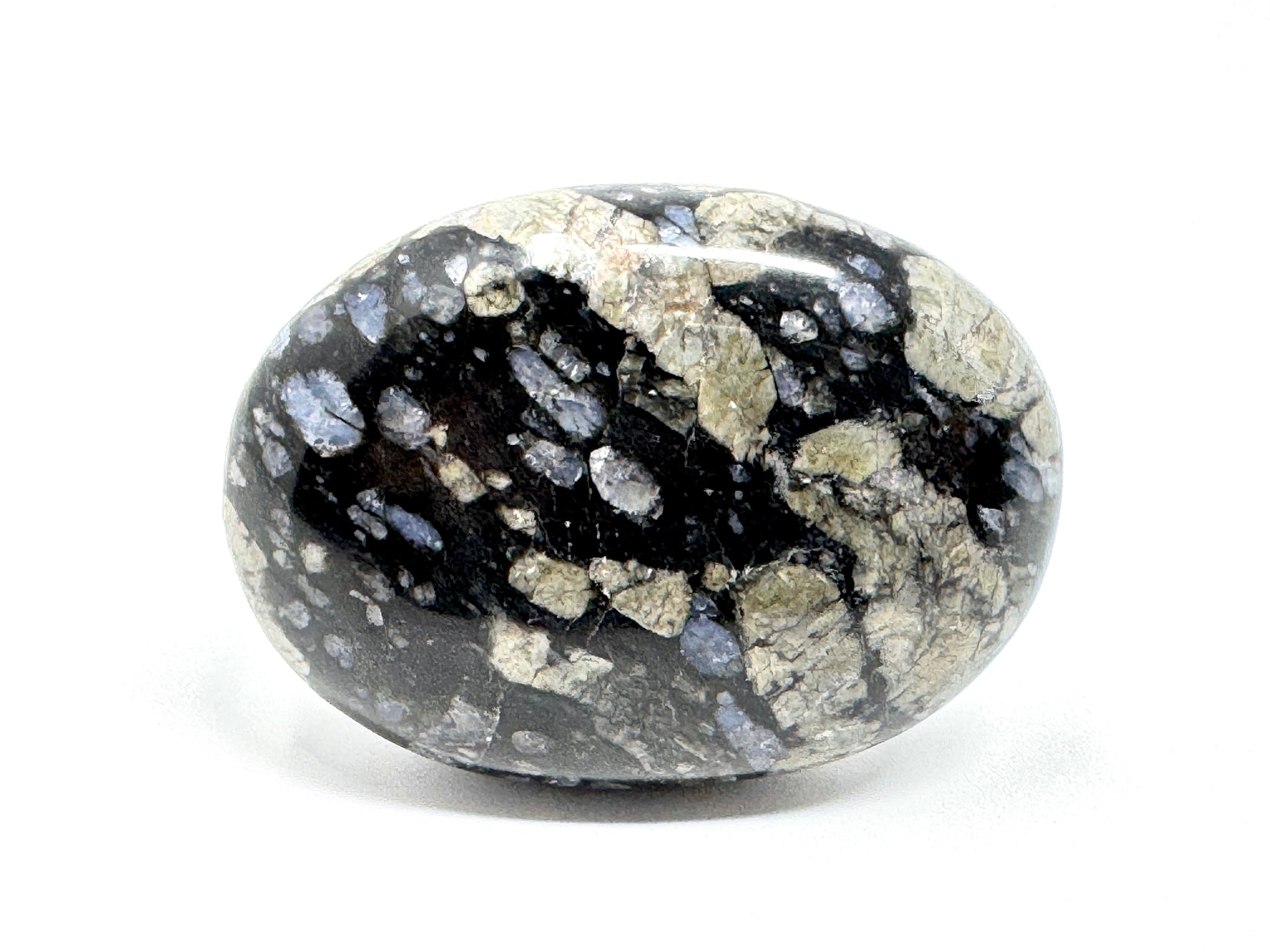The Polished Que Sera Stone has been cut into a smooth, tactile oval pebble shape (oval palm stone shape).