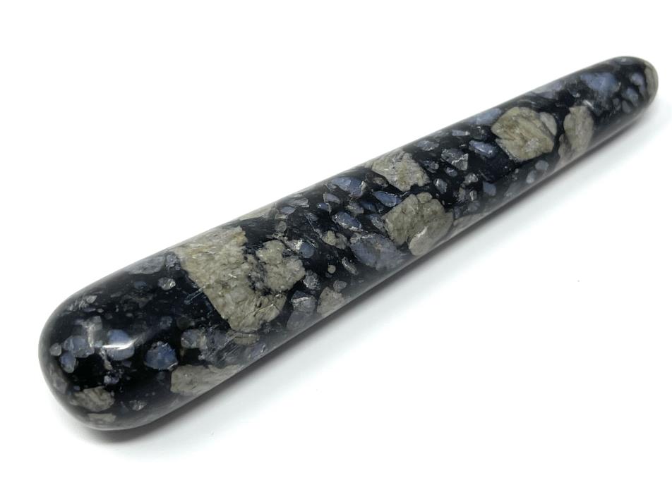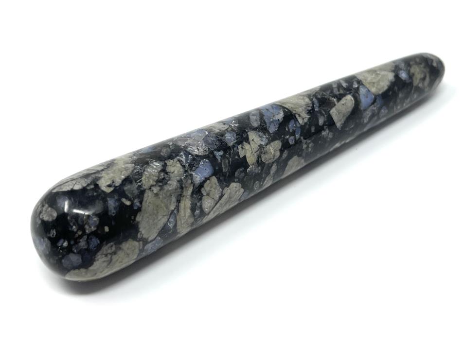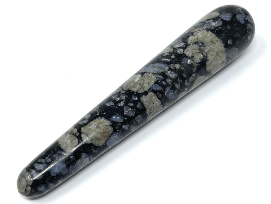 The Polished Que Sera Stone has been cut into a smooth, tactile crystal massage wand shape (crystal wand shape).