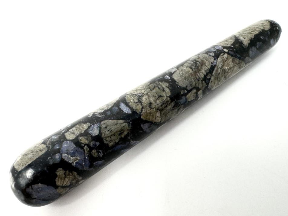 The Polished Que Sera Stone has been cut into a smooth, tactile crystal massage wand shape (crystal wand shape).