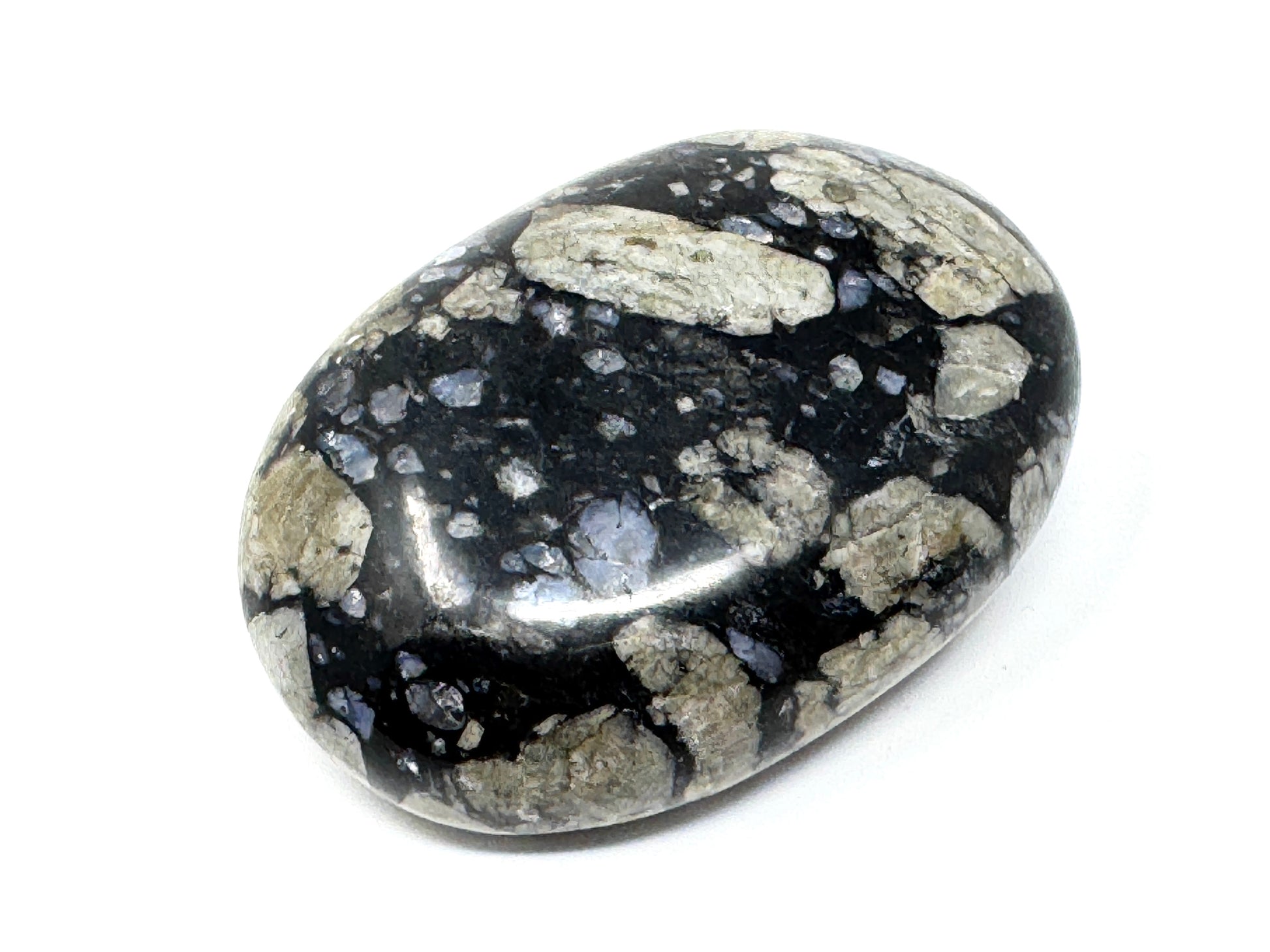 The Polished Que Sera Stone has been cut into a smooth, tactile oval pebble shape (oval palm stone shape).
