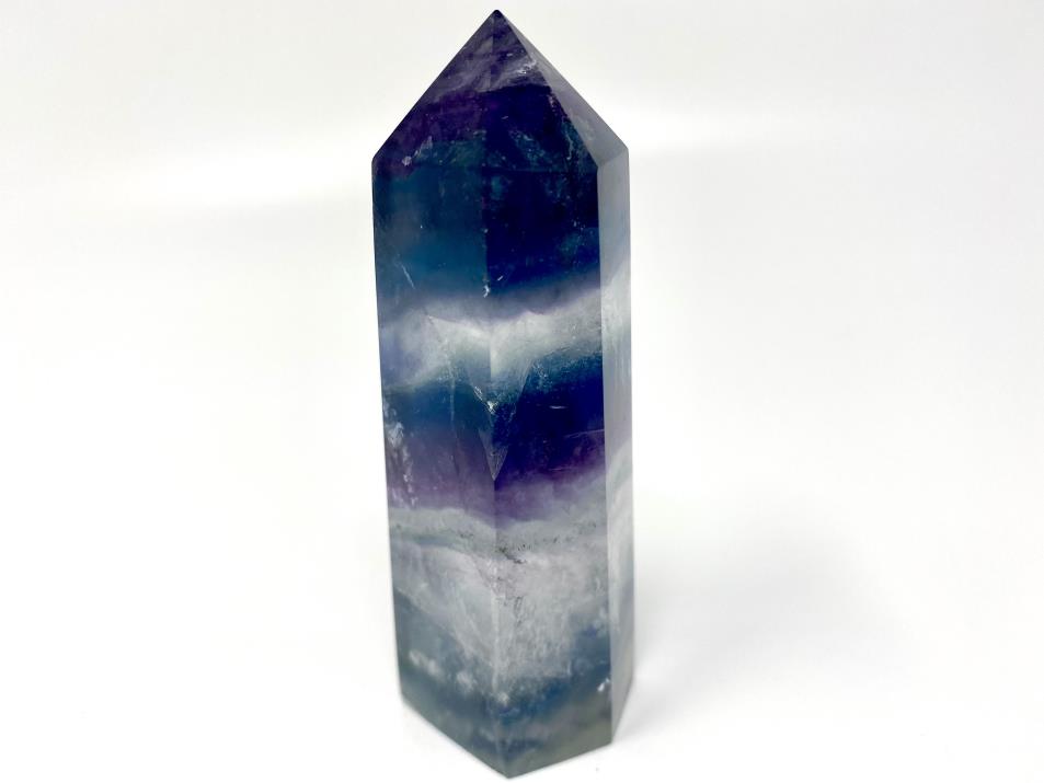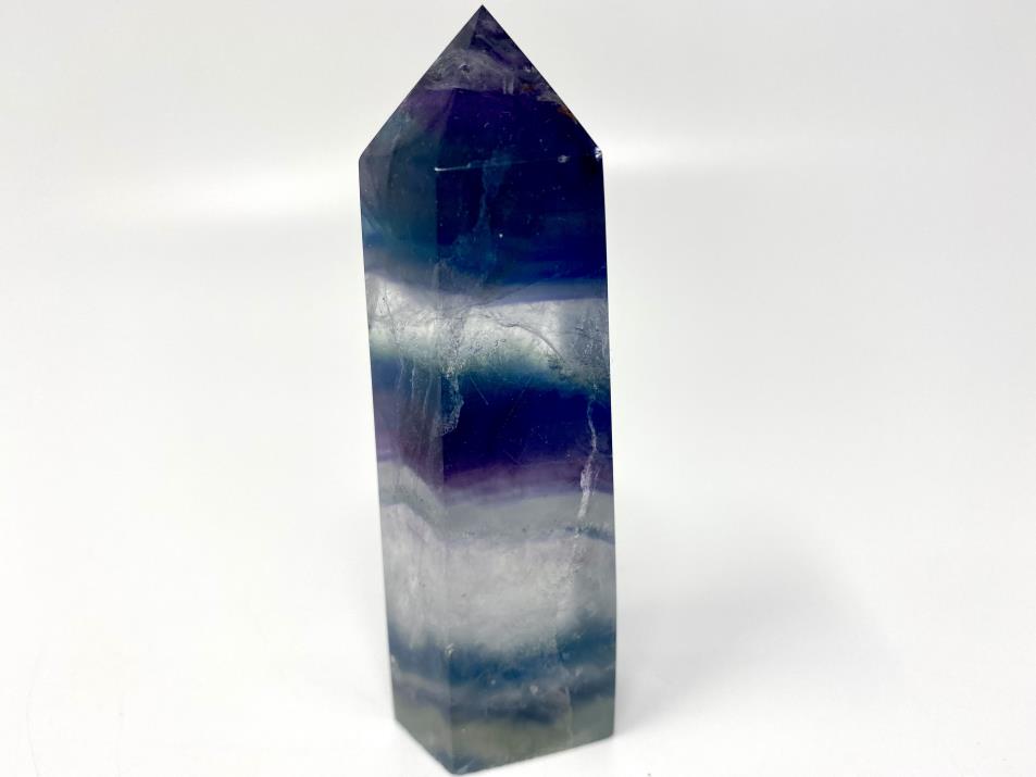 This magnificently colourful 9.2cm tall , large Rainbow Fluorite Point showcases a spectacular spectrum of colour, including some subtle rainbow flashes when turned in the light.
