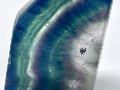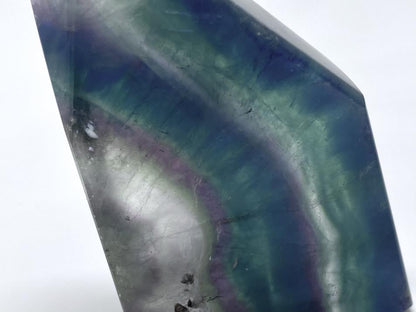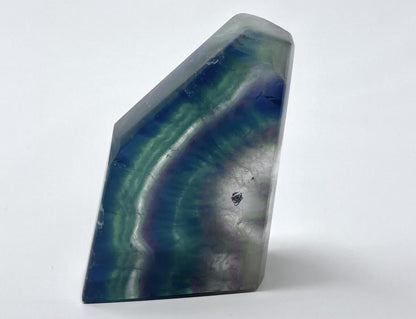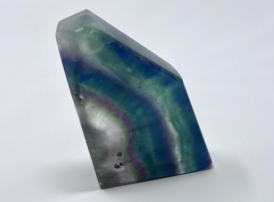 Large Rainbow Fluorite Freeform, crystal for sale from China. This gorgeous 11cm tall Large Rainbow Fluorite Crystal Freeform is polished all over its surfaces.