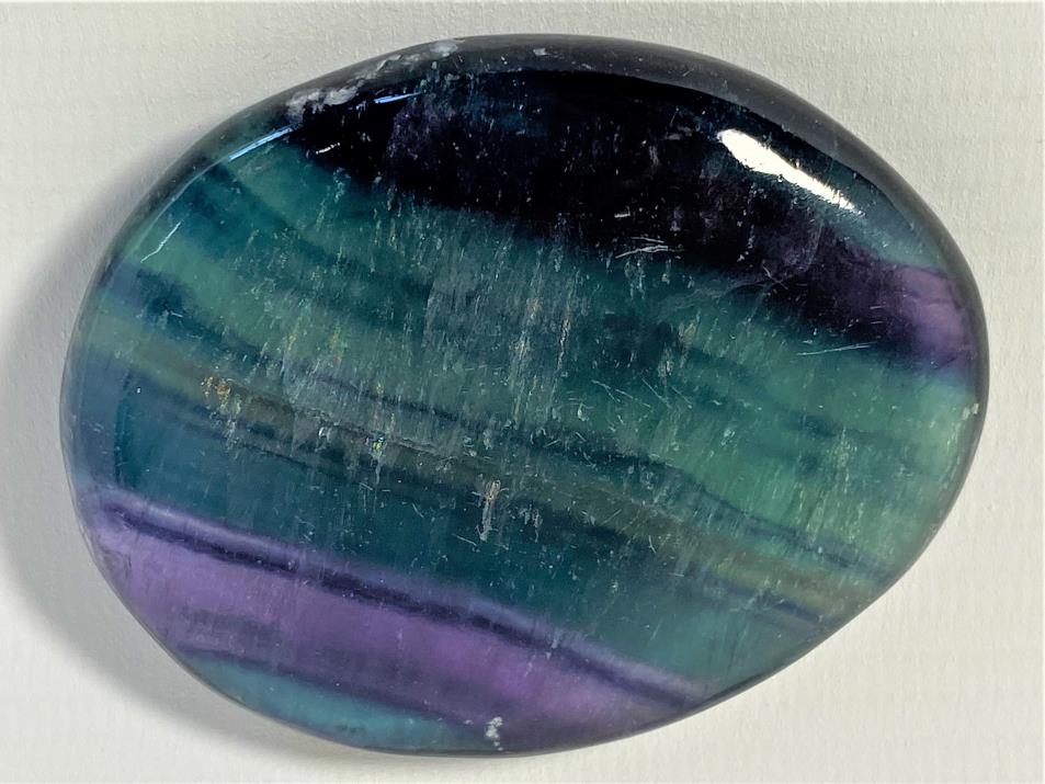 This magnificently colourful 6.6cm long Rainbow Fluorite Pebble showcases a spectacular spectrum of colour.