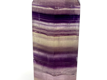 The Fluorite is of a very high grade, displaying shimmering bands of purples amidst stripes of subtle golden-yellow and transparent bands, which complement each-other to create a radiant effect.