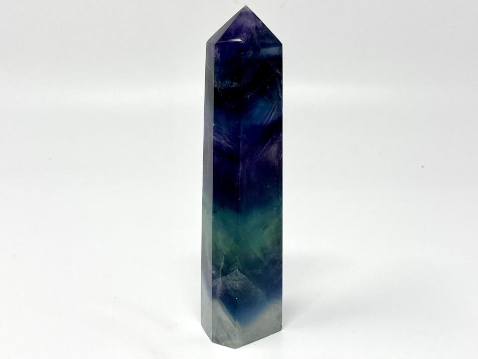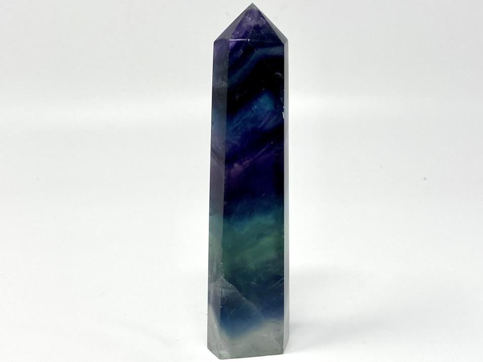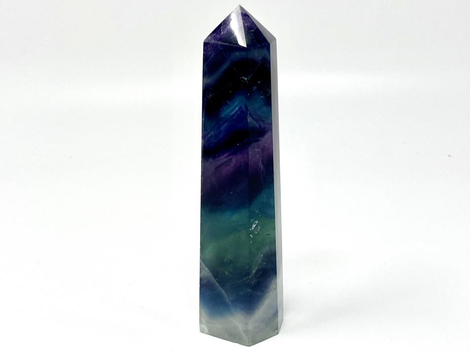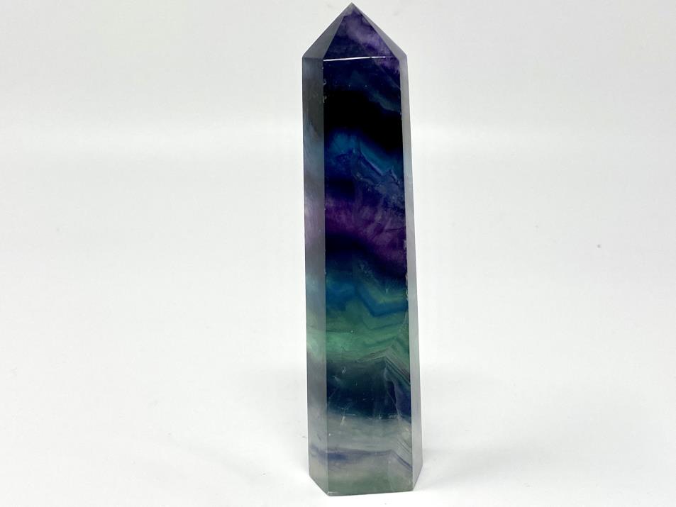 This subtle, colourful 13.2cm tall Rainbow Fluorite Point showcases a spectacular spectrum of colour.