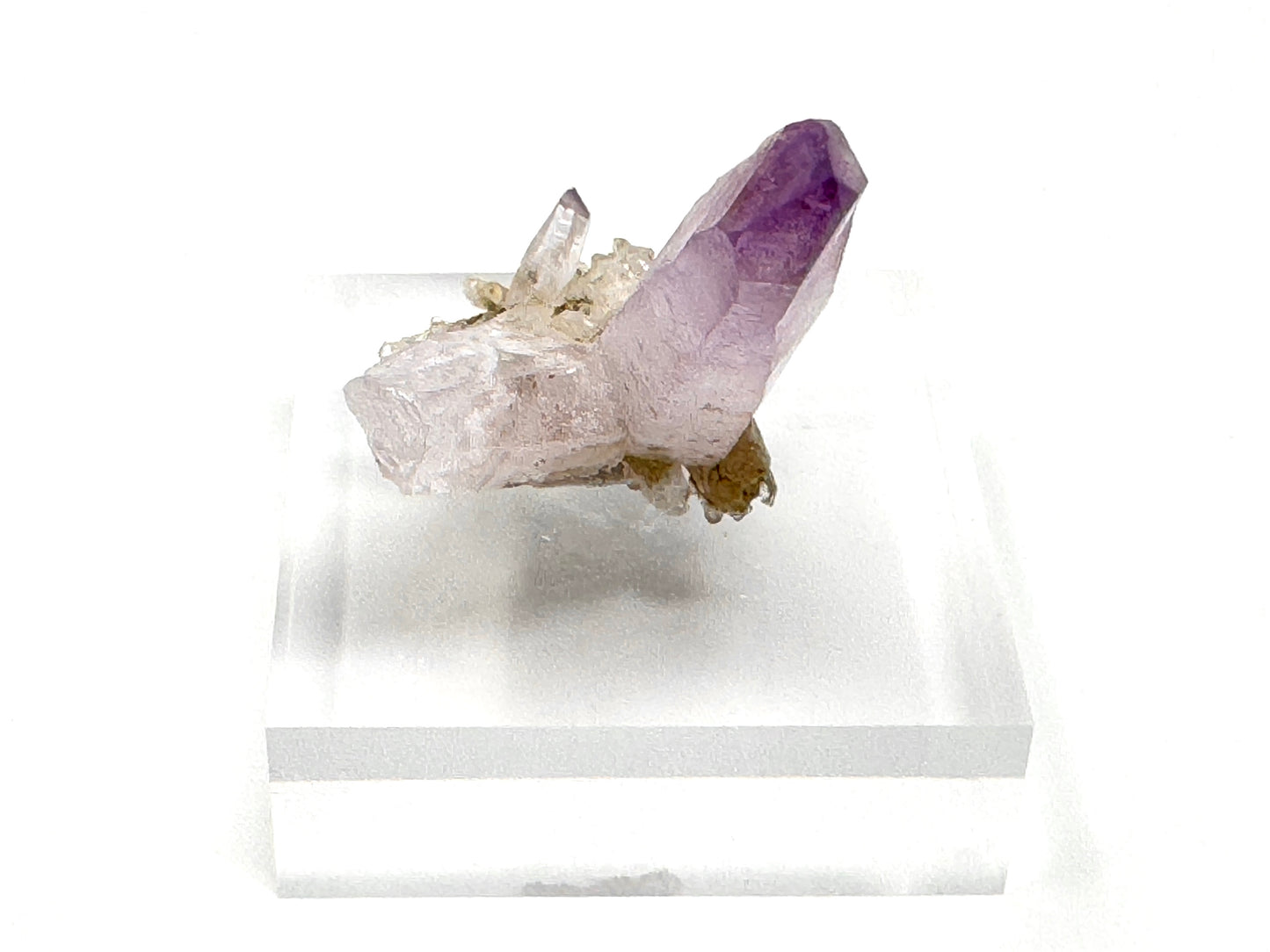 This specimen of Vera Cruz Amethyst on matrix comes complete with a clear perspex display stand (measuring 5cm long and wide and 2cm deep, and weighing 50 Grams), upon which the Vera Cruz Amethyst crystal bed can be placed for display purposes.