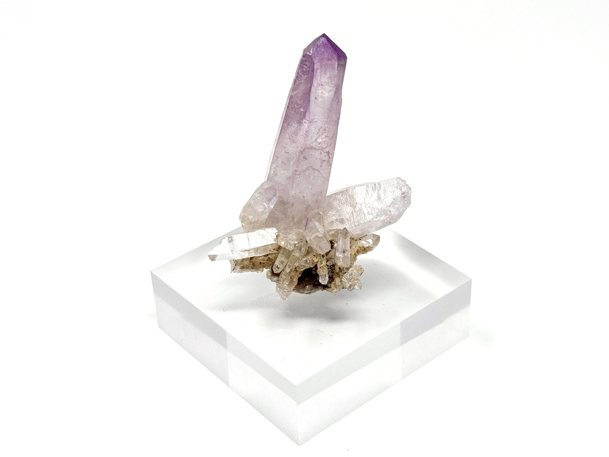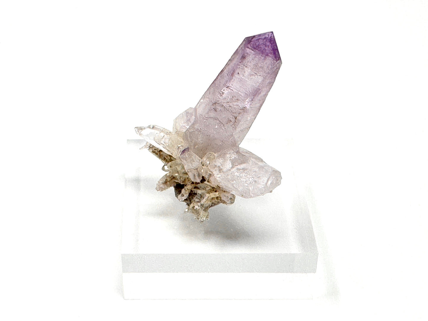A Vera Cruz Amethyst crystal tends to display pale purple Lavender Amethyst crystals which form as natural crystal points and wands, often in Amethyst crystal clusters protruding from rock, forming Vera Cruz Amethyst on matrix.