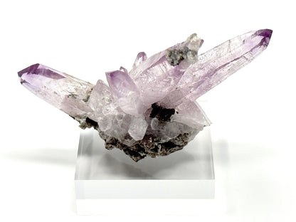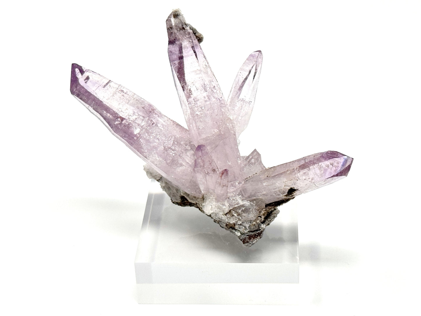 A Vera Cruz Amethyst crystal tends to display pale purple Lavender Amethyst crystals which form as natural crystal points and wands, often in Amethyst crystal clusters protruding from rock, forming Vera Cruz Amethyst on matrix.