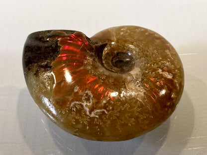 Due to their fiery hues, these red iridescent ammonites are often referred to as fire ammonites, although they are also sometimes called opalescent ammonites in reference to their opal-like appearance.
