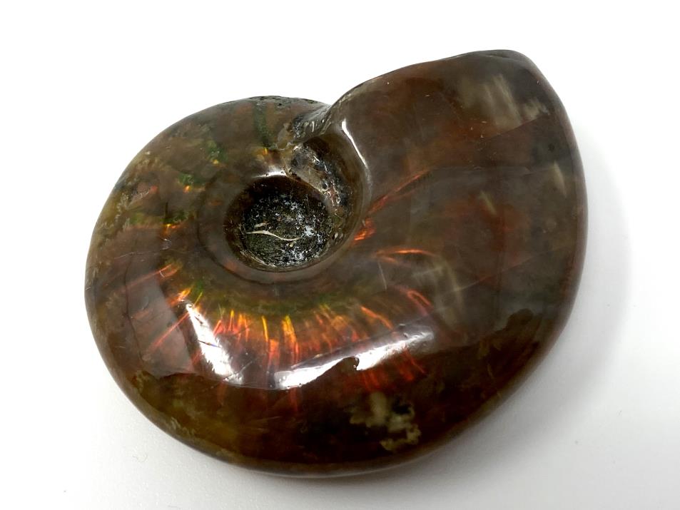Gem ammonites such as this red iridescent ammonite are called biogenic gemstones (the only other gems of this type are pearl and amber) because they are formed from the fossilised organic material of once living creatures.
