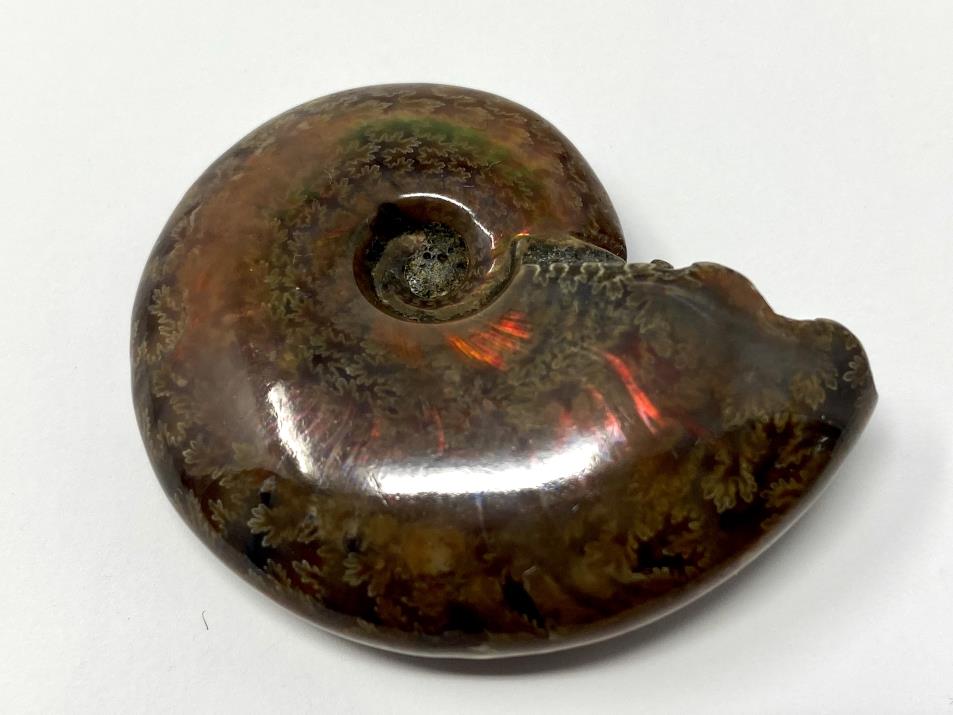 Gem ammonites such as this red iridescent ammonite are called biogenic gemstones (the only other gems of this type are pearl and amber) because they are formed from the fossilised organic material of once living creatures.