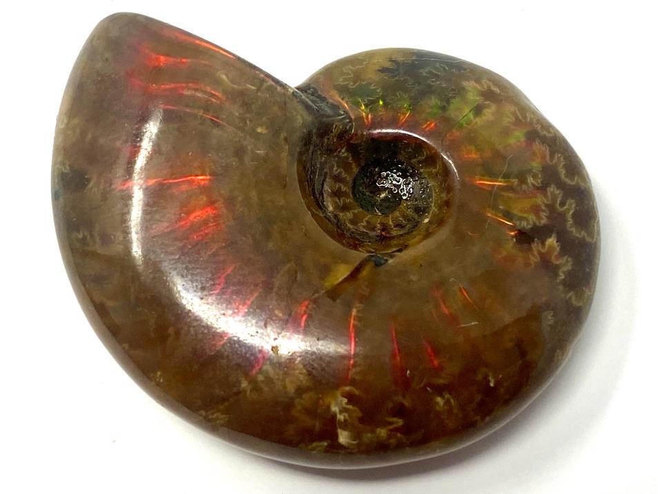 Gem ammonites such as this red iridescent ammonite are called biogenic gemstones (the only other gems of this type are pearl and amber) because they are formed from the fossilised organic material of once living creatures.