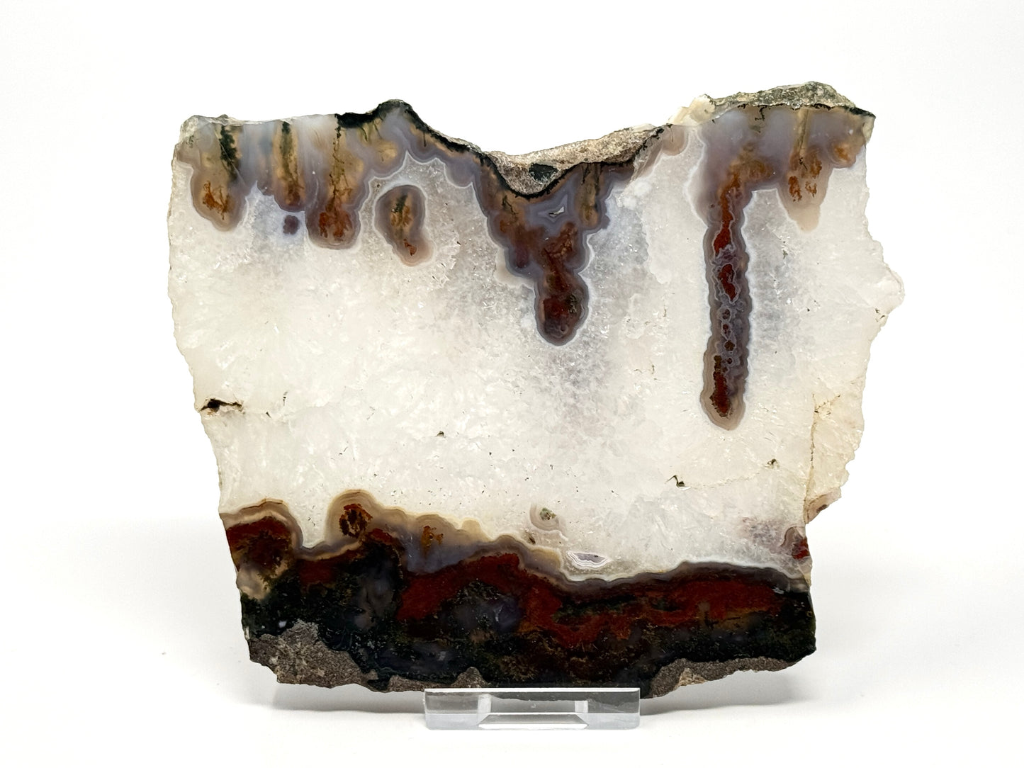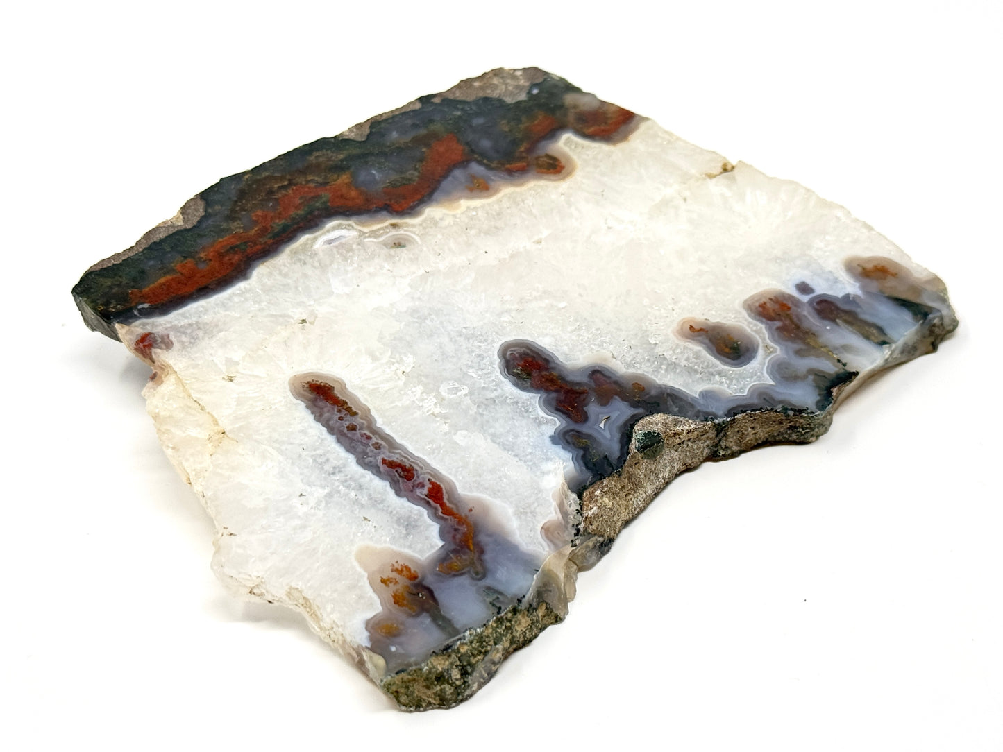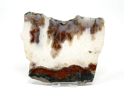 This unique Moss Agate Slice also shows striking red bands.